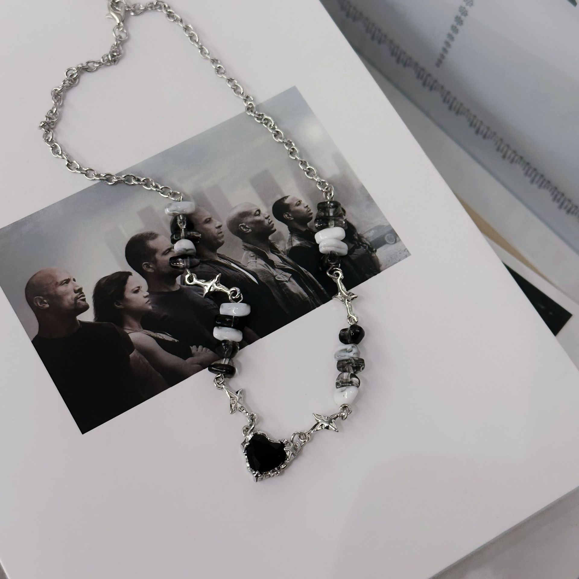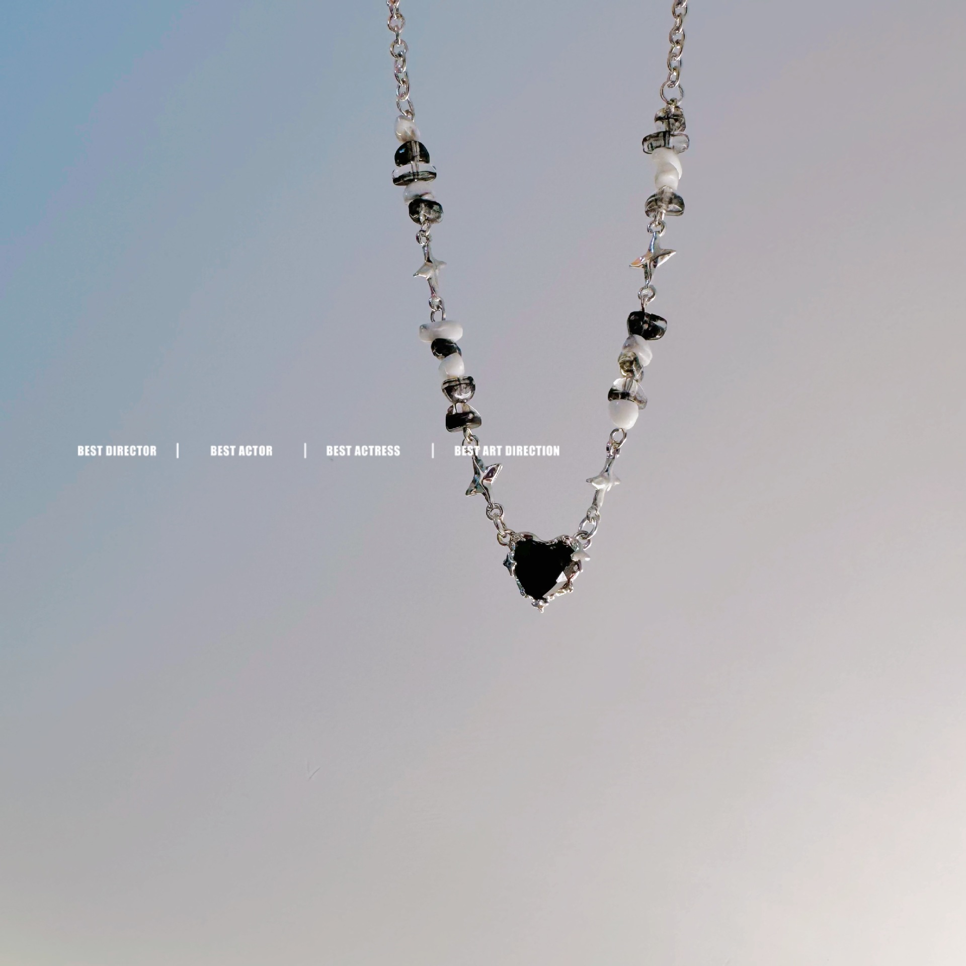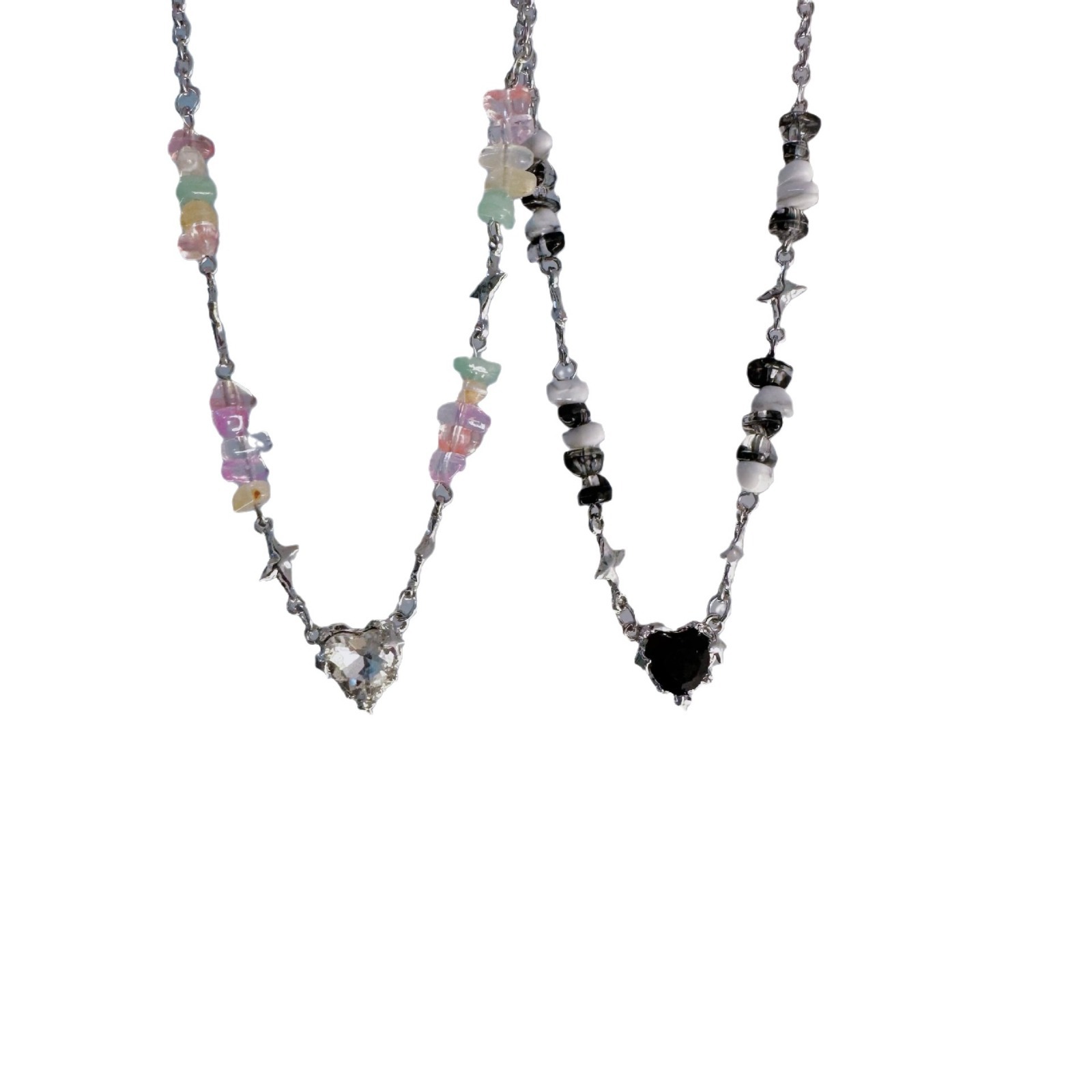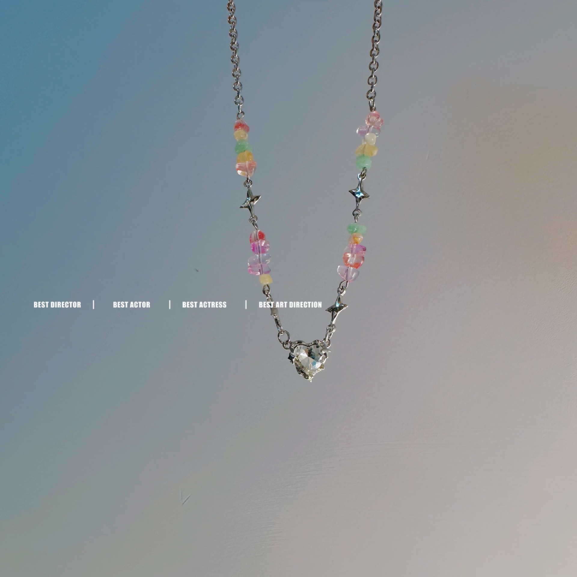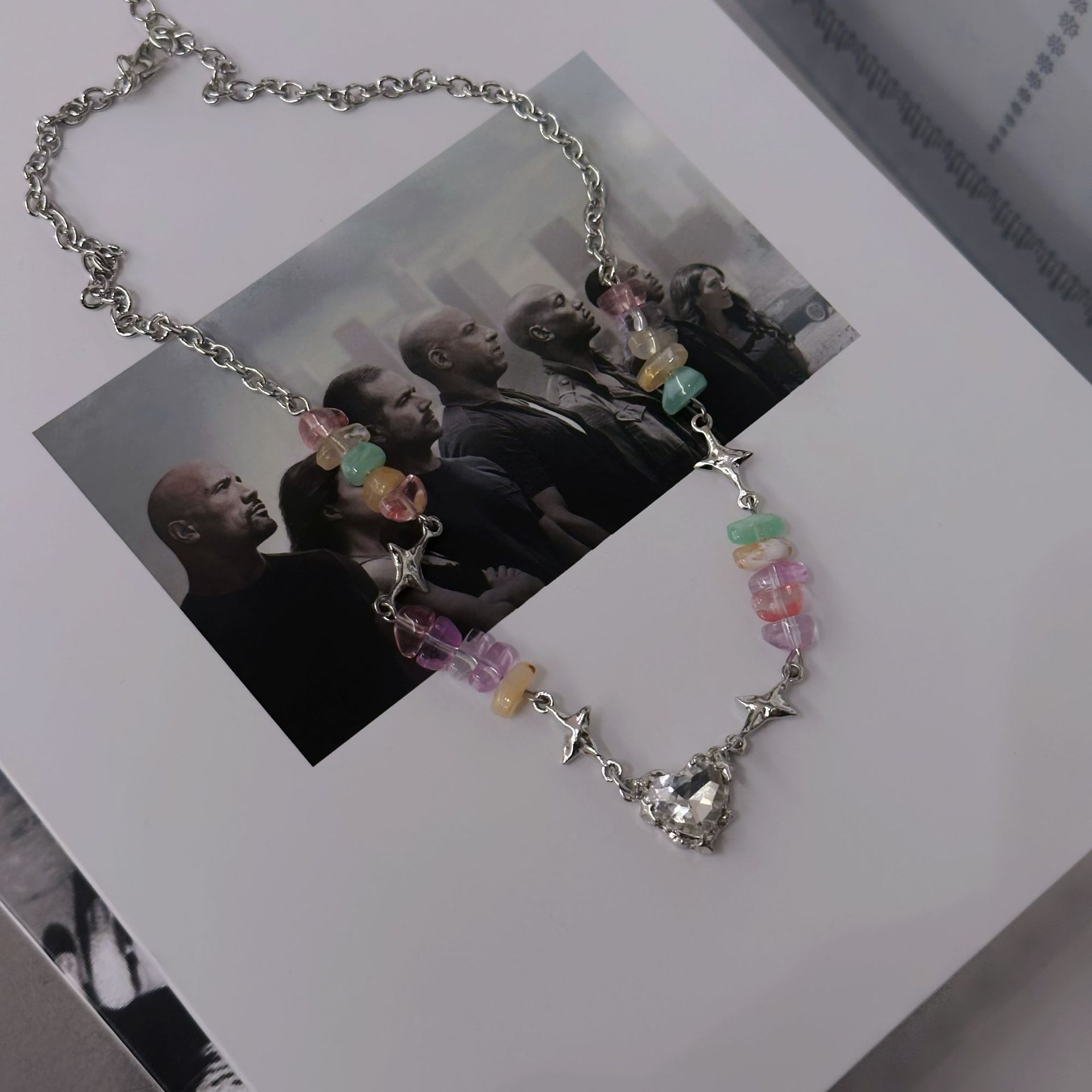 轻奢小众多巴胺彩色碎石拼接爱心项链女辣妹y2k甜酷风高级锁骨链