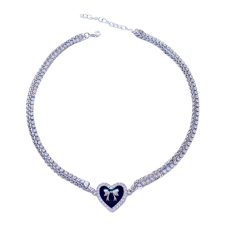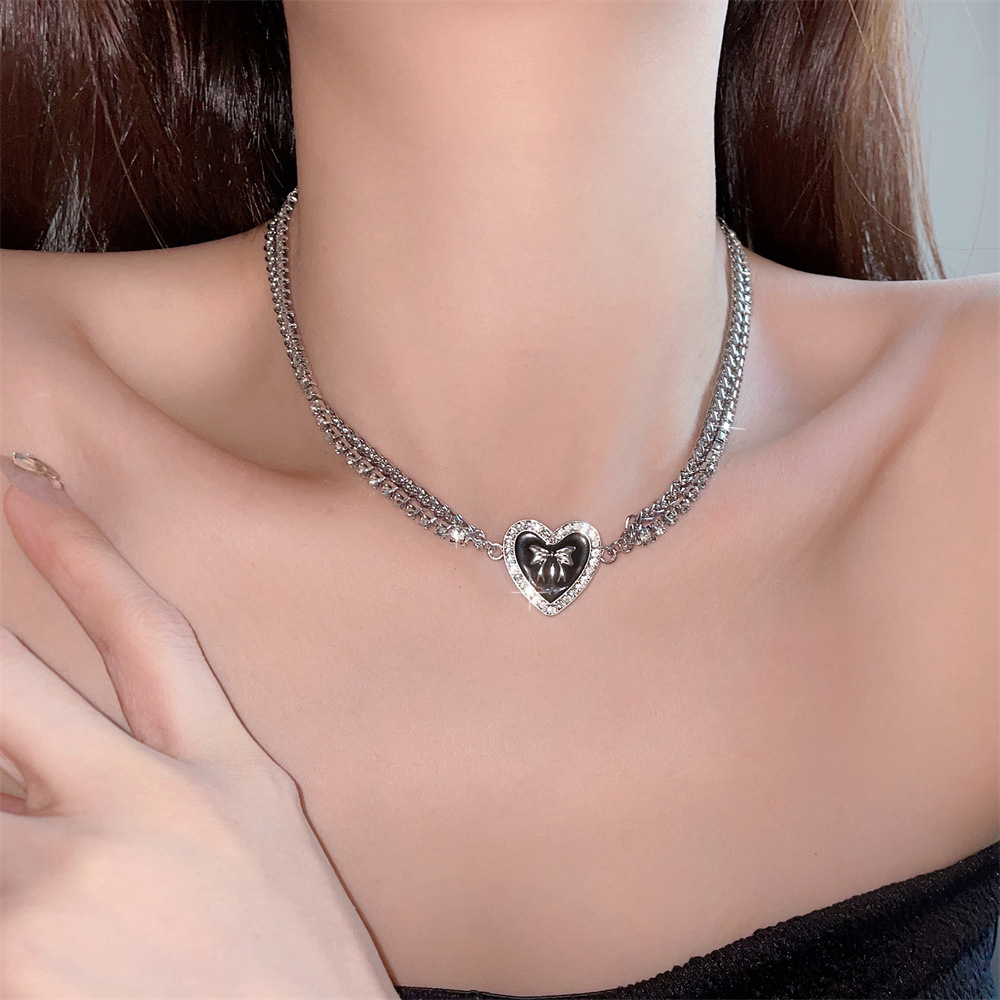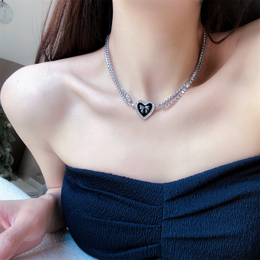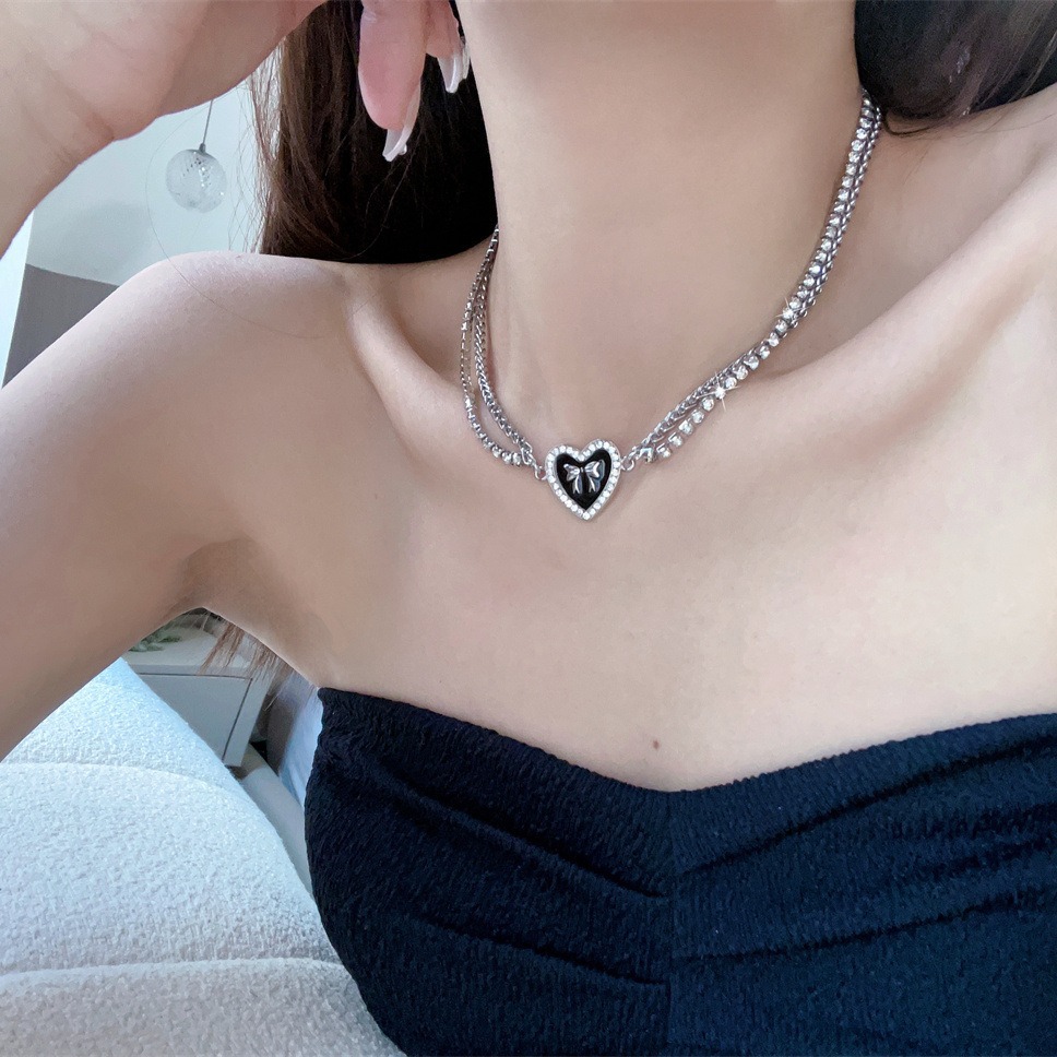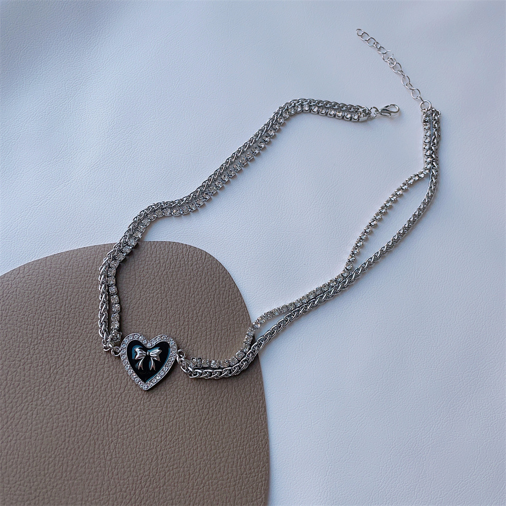 日韩小众高级感滴油水钻桃心蝴蝶结项链女小香风甜酷风锁骨链饰品