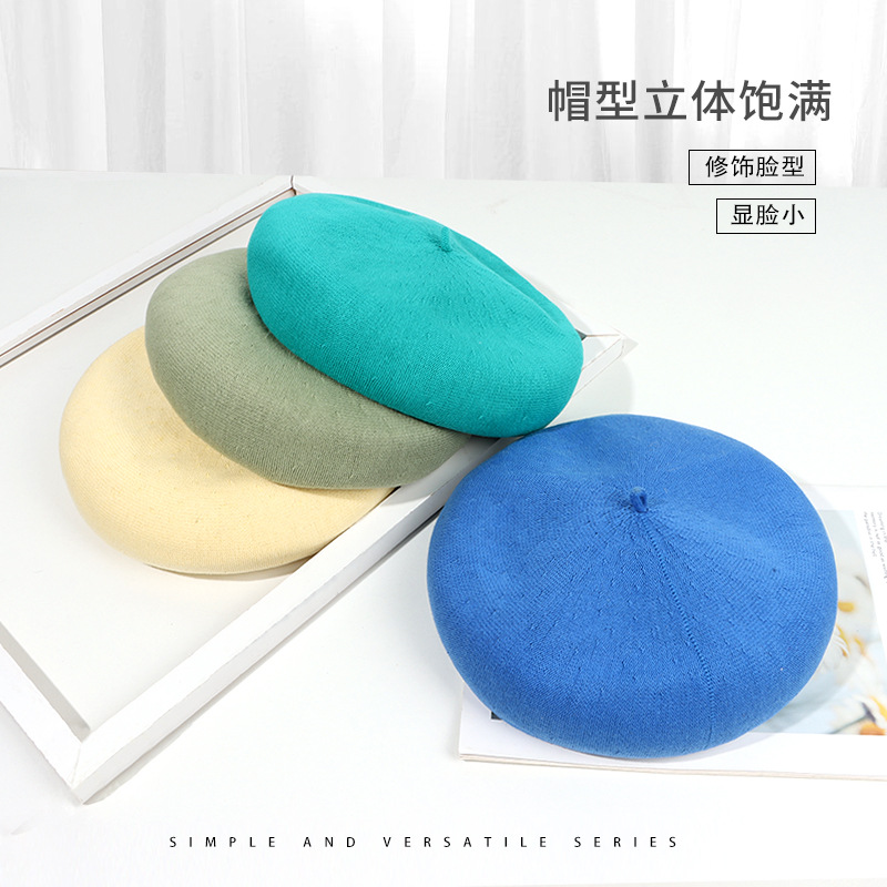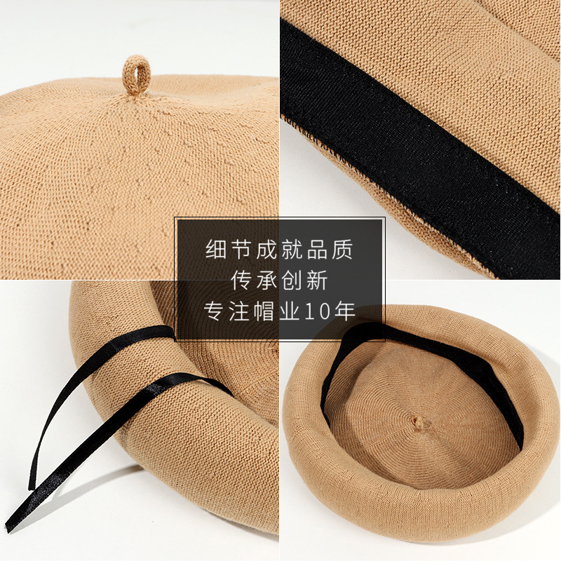 帽子女夏季奶油色系贝雷帽棉线透气轻薄画家帽百搭韩系幸运环帽子