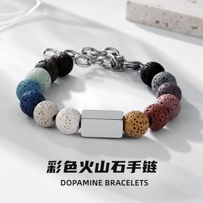 火山石手链男生 简约高级感彩色手串 小众多巴胺潮流配饰男女