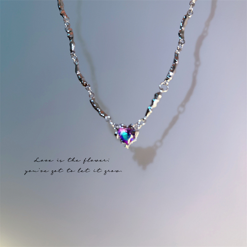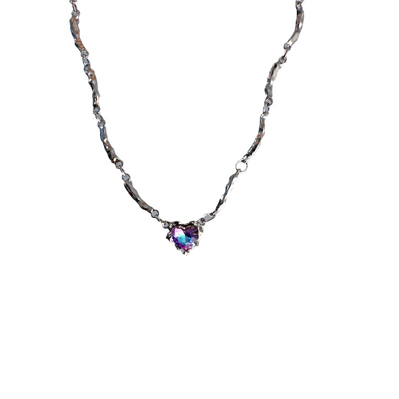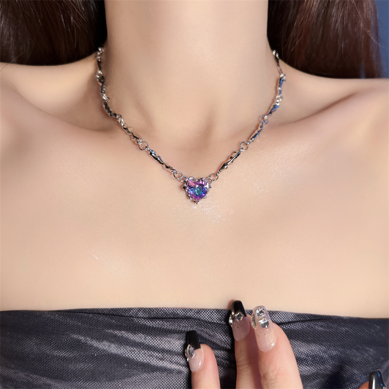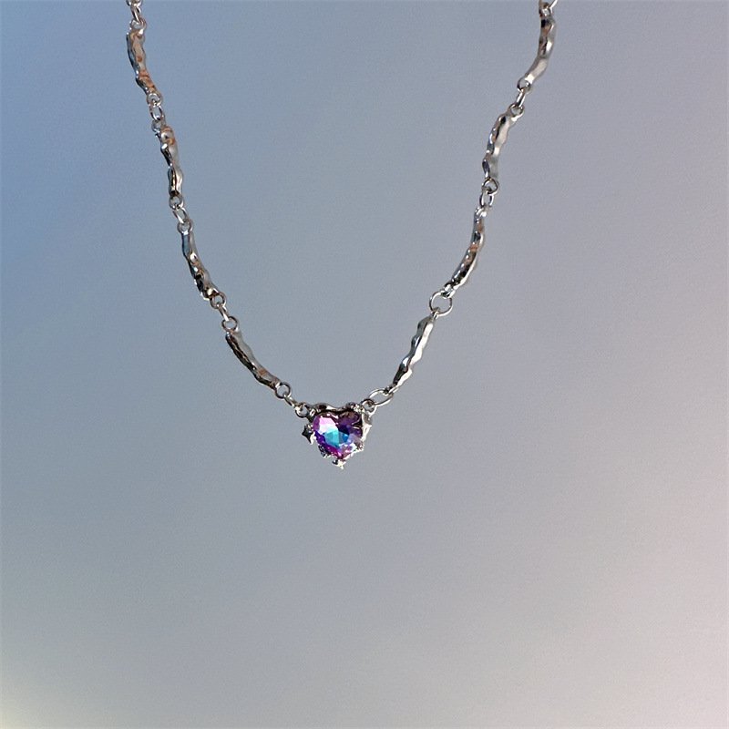 轻奢小众高级感紫色锆石爱心吊坠项链女百搭甜酷风幻彩水晶锁骨链