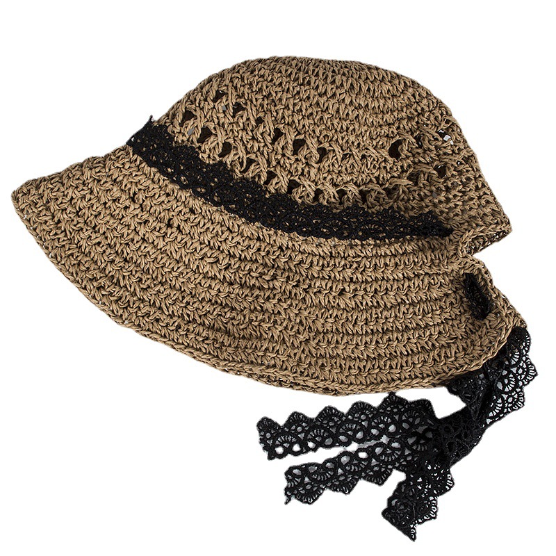 设计师款名媛气质蕾丝绑带草帽女夏季网红度假沙滩帽女户外遮阳帽