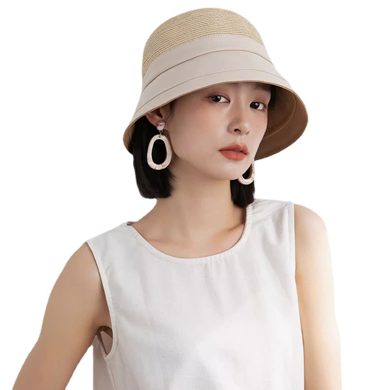 设计师细草拼接草帽夏季海边度假太阳帽户外防晒遮阳帽百搭渔夫帽