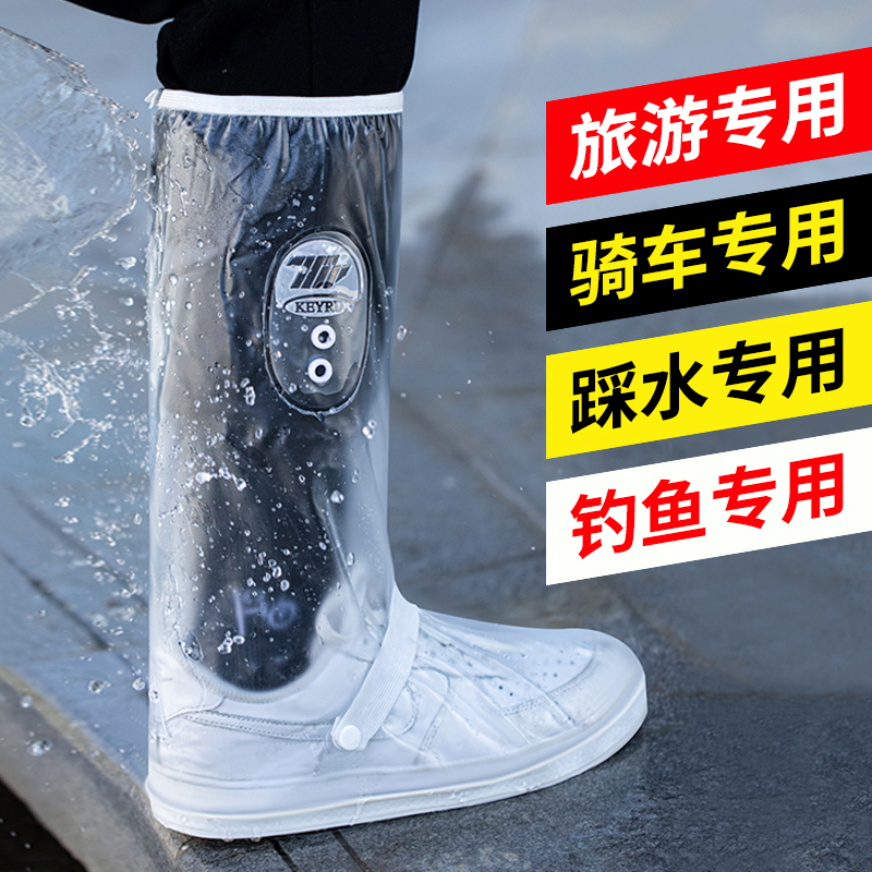 防水鞋套男款防滑高筒外穿防沙套鞋加厚摩托车骑行透明脚套雨鞋女