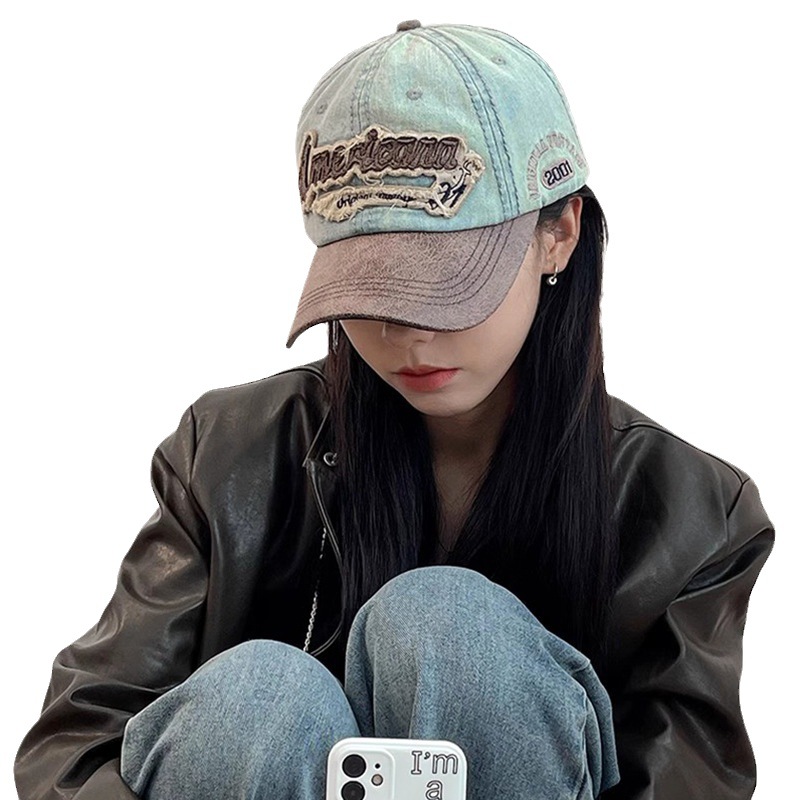 美式做旧复古牛仔鸭舌帽女网红街拍水洗贴布百搭棒球帽韩版太阳帽