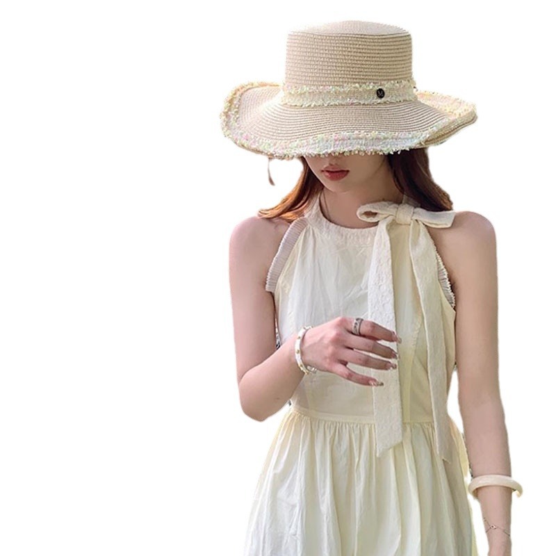 设计师网红小香风草帽女赫本海边度假沙滩帽女夏季户外防晒遮阳帽