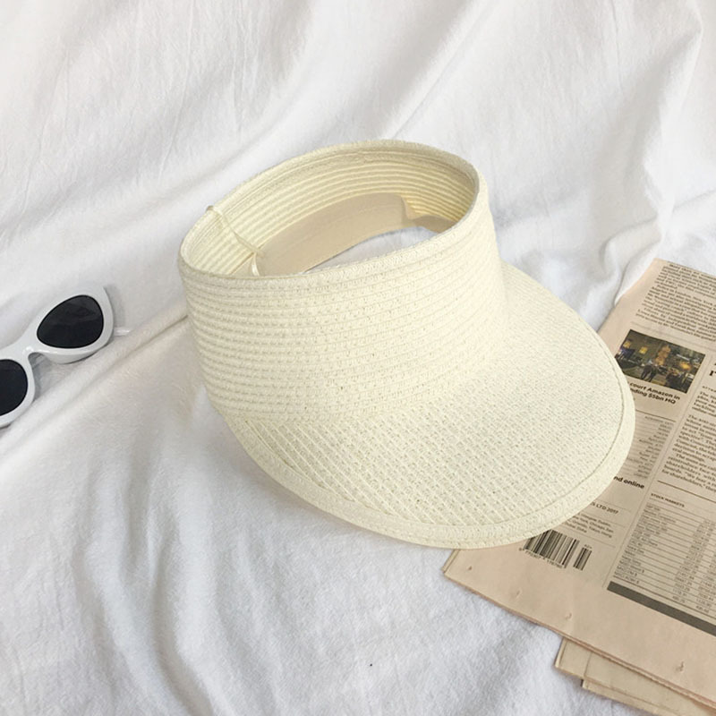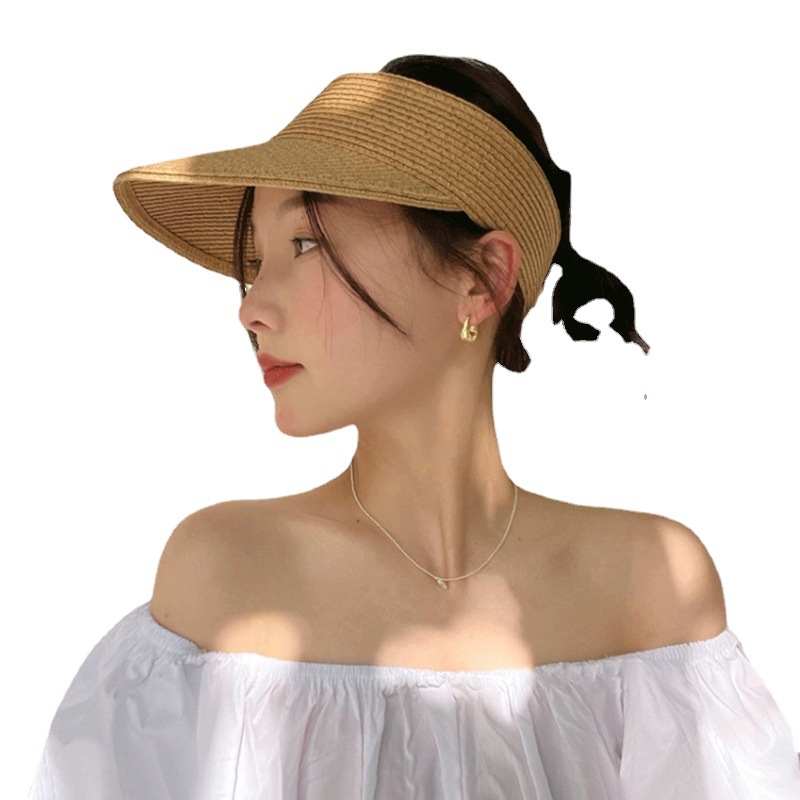 设计师款韩国网红草编空顶帽女夏季透气无顶防晒帽户外海边遮阳帽