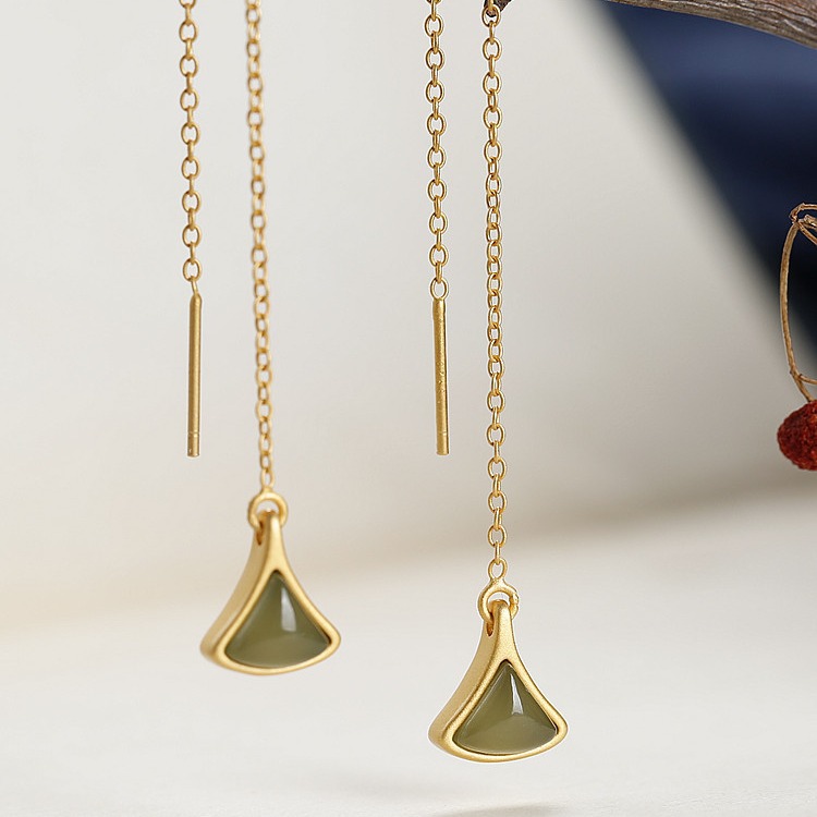 纯银银杏耳线女和田玉高级感气质流苏南红玛瑙耳环耳钉耳饰