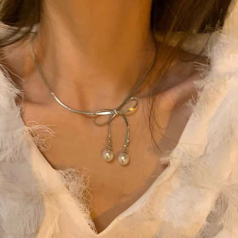 甜酷辣妹~大蝴蝶结项链女ins潮高级感百搭冷淡风复古锁骨链毛衣链