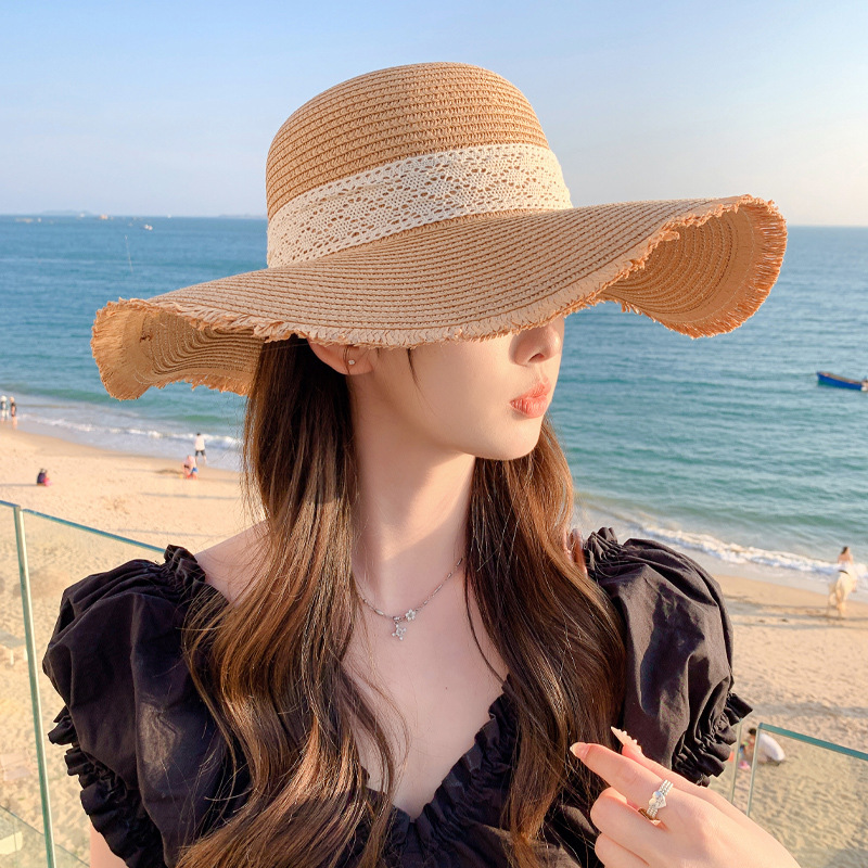 夏季新款帽子女丝带蝴蝶结大檐草帽户外旅游遮阳帽防晒沙滩太阳帽