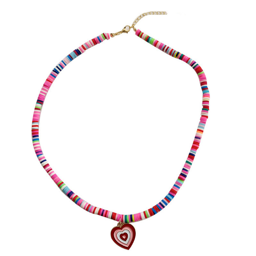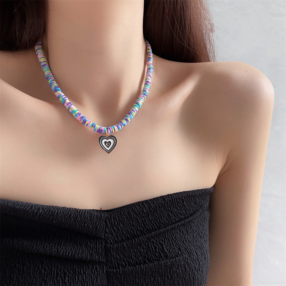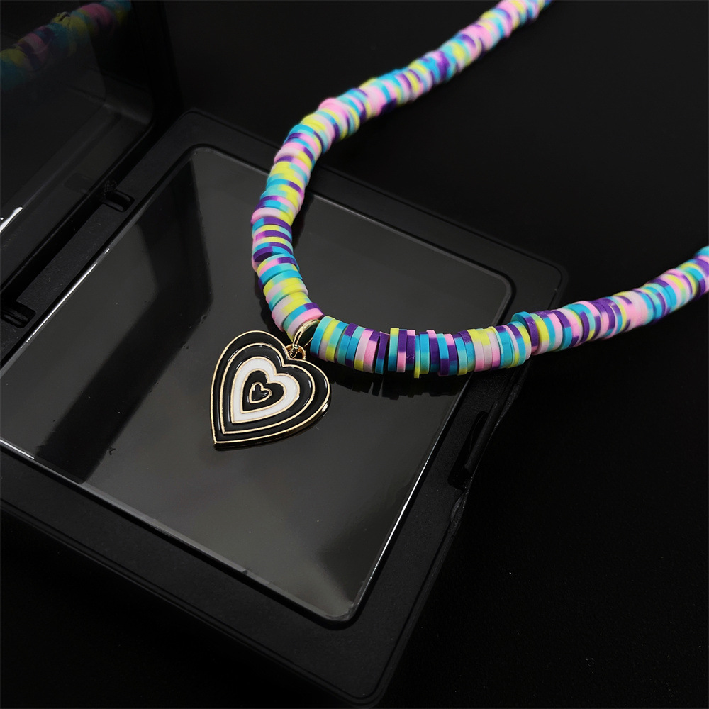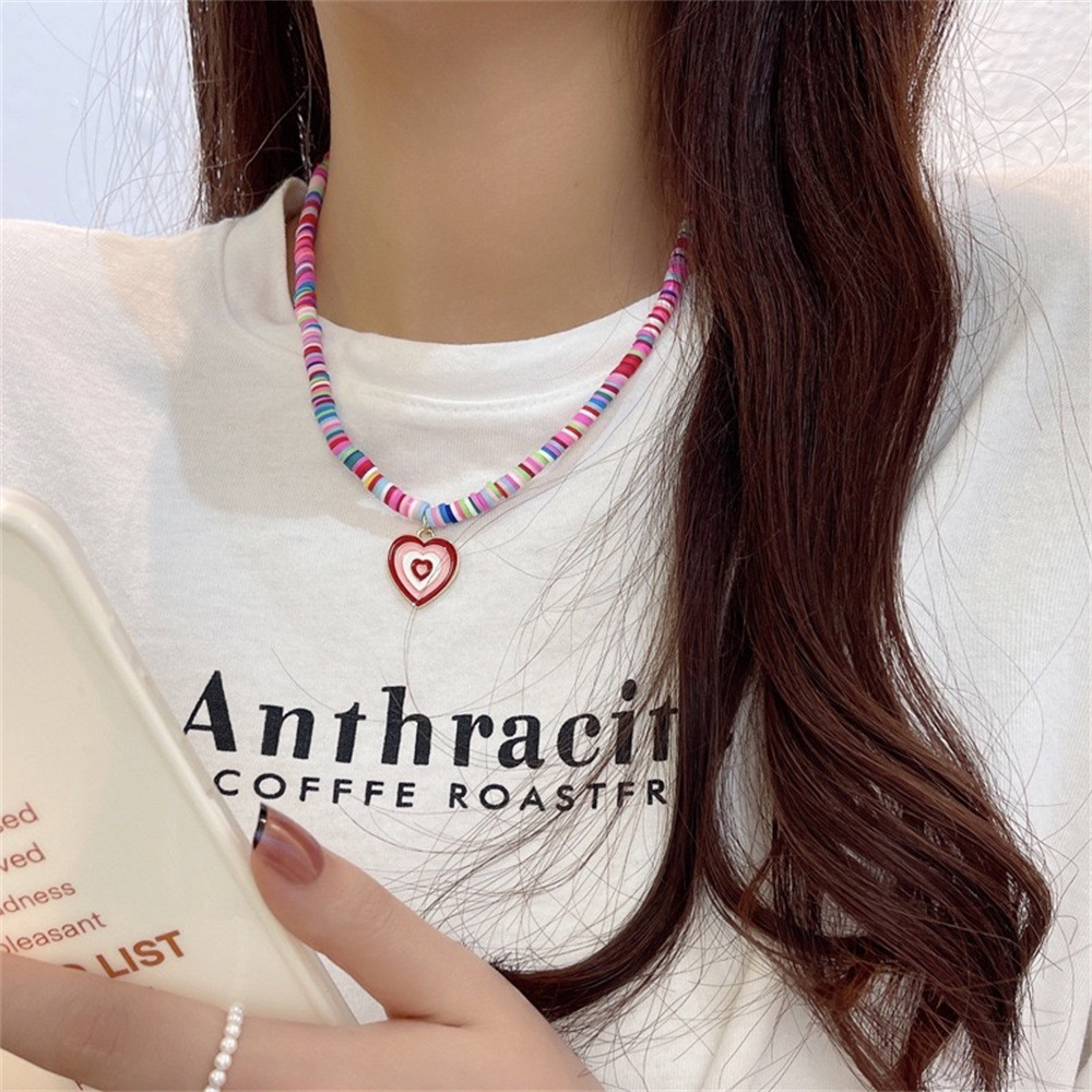 日韩甜酷风糖果色爱心吊坠项链女网红甜美可爱撞色百搭颈链锁骨链