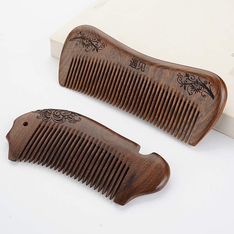 黑金檀木梳子雕花复古旅游景点热卖大月梳刻字精致高端顺发梳