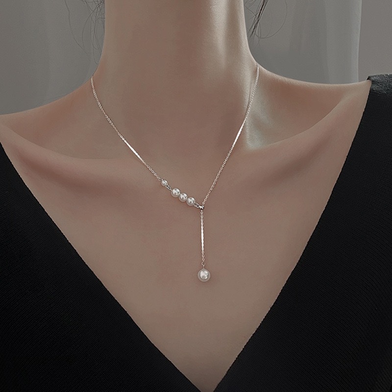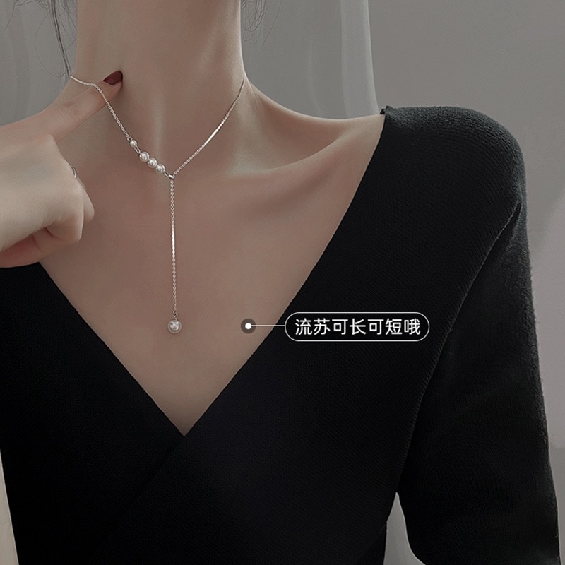 钛钢不掉色轻奢小众珍珠项链饰品女秋冬百搭精致串珠锁骨链毛衣链