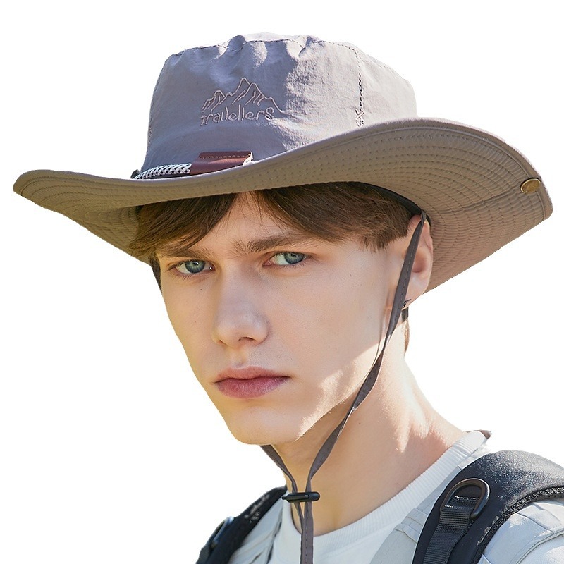 户外爬山运动登山帽旅游简约夏天系绳男士帽子渔夫帽潮流可折叠帽