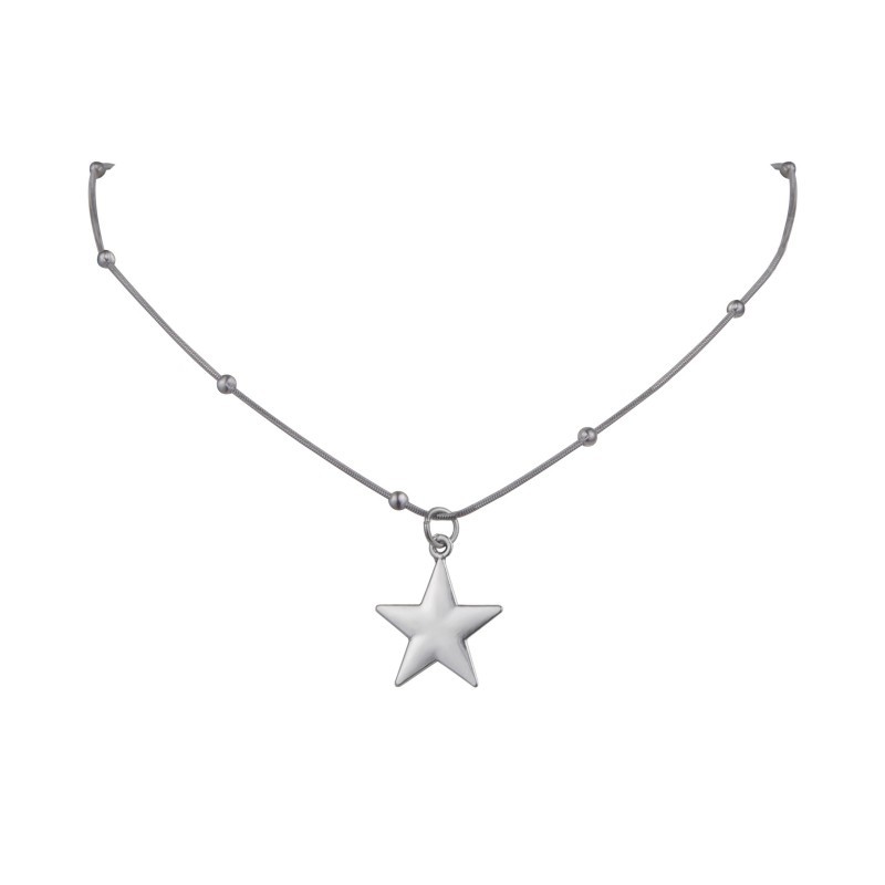 欧美简约钛钢五角星夹珠链项链女辣妹个性甜酷风星星吊坠锁骨链男