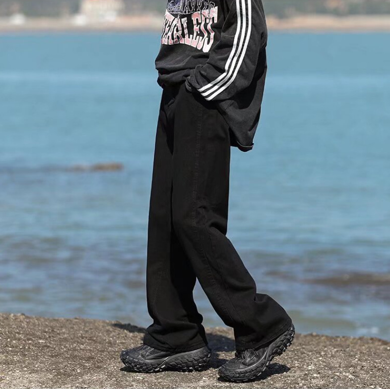 设计感微喇牛仔裤男春夏ins潮牌美式宽松直筒垂感拖地休闲长裤男