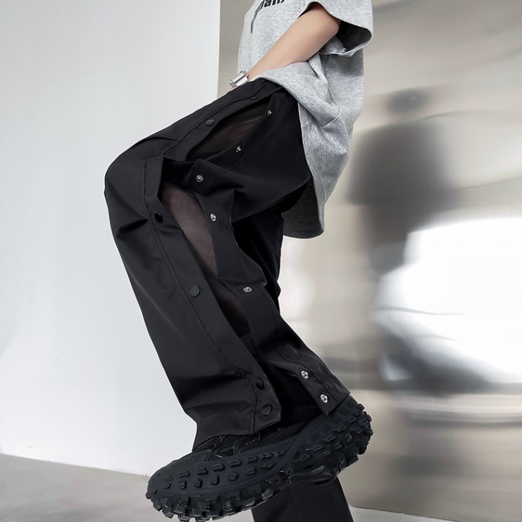 美式拼接网眼排扣冲锋裤男春夏季工装户外登山裤潮流休闲运动长裤