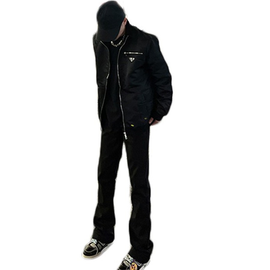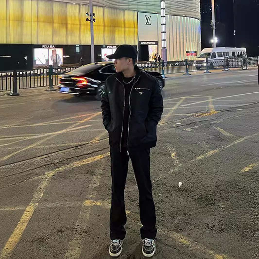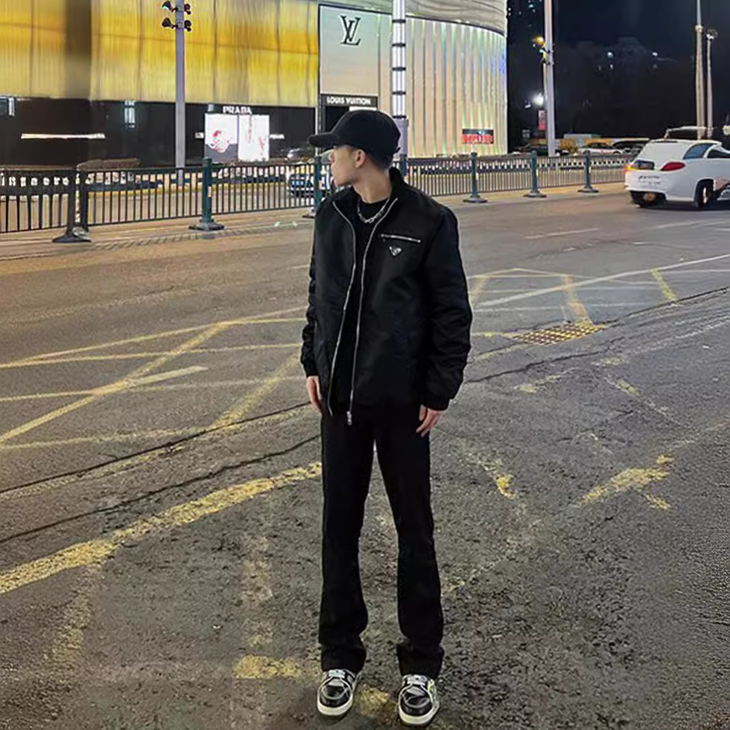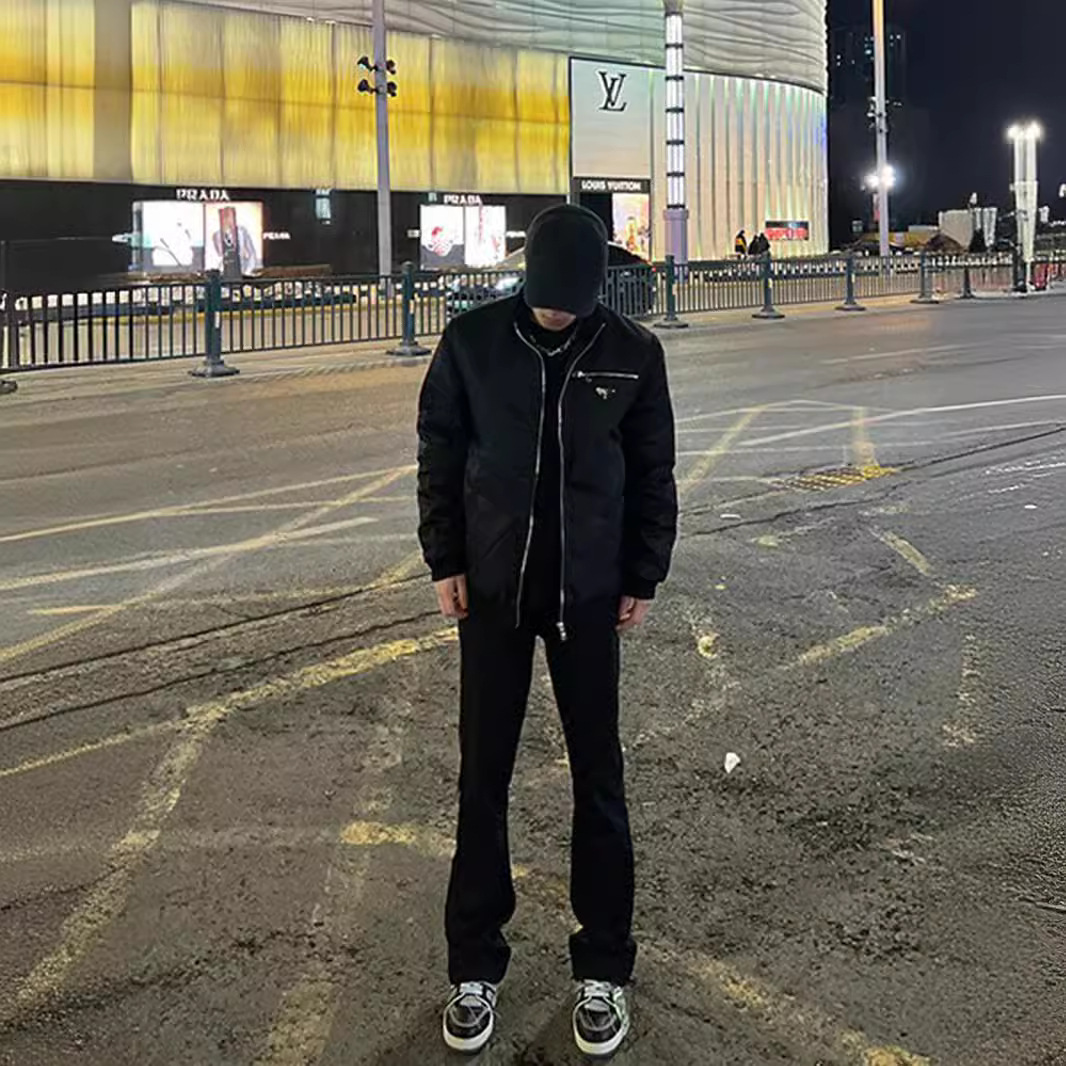 纯黑色休闲微喇牛仔裤男款美式vibe高街裤子痞帅高级感宽松直筒裤