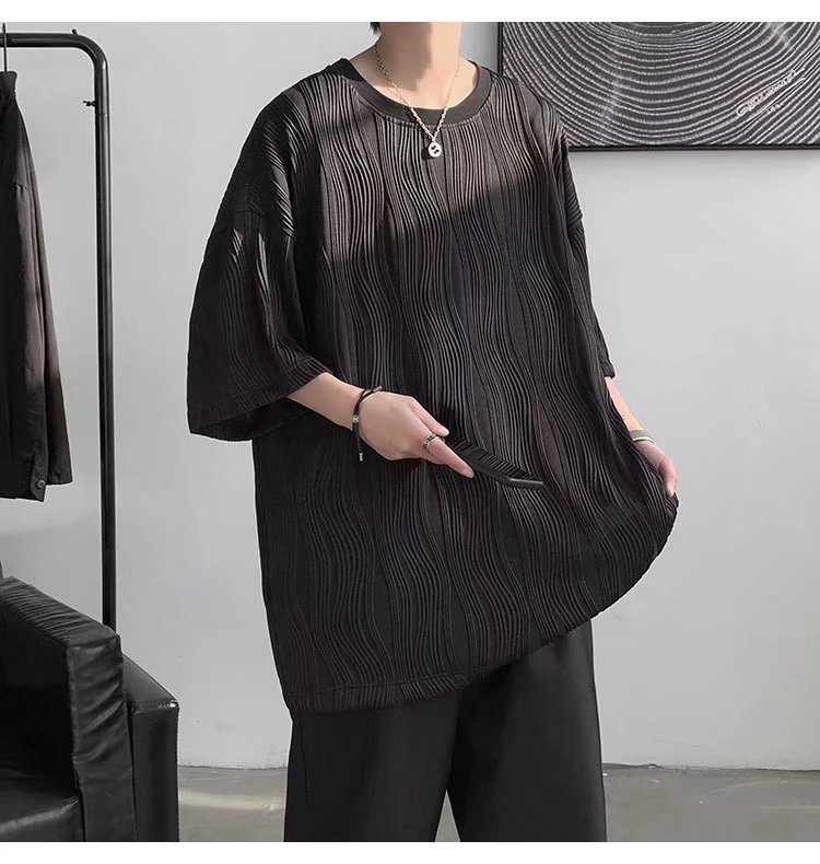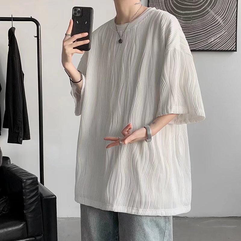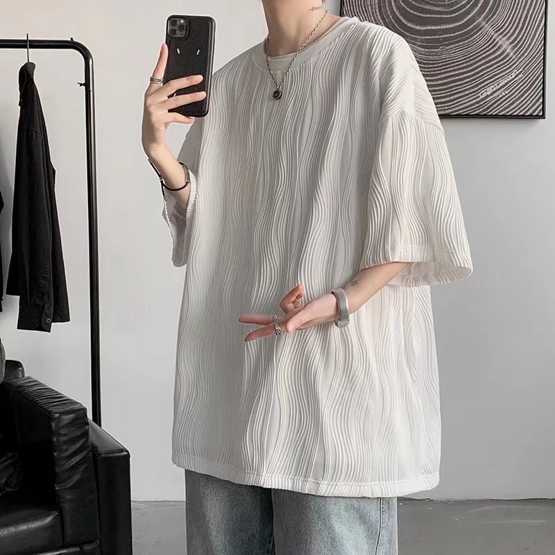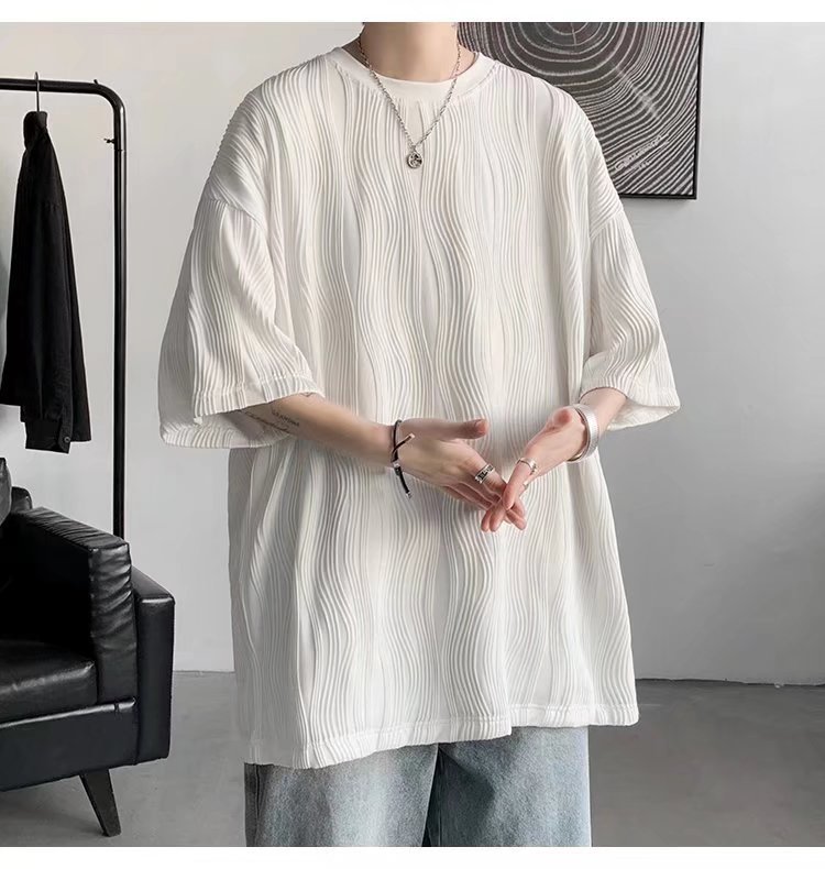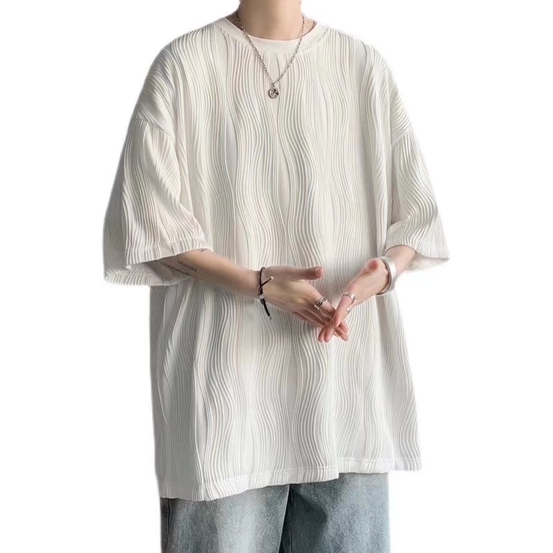 新款纹理短袖t恤男夏季潮流简约半袖上衣港风宽松休闲潮牌体恤衫