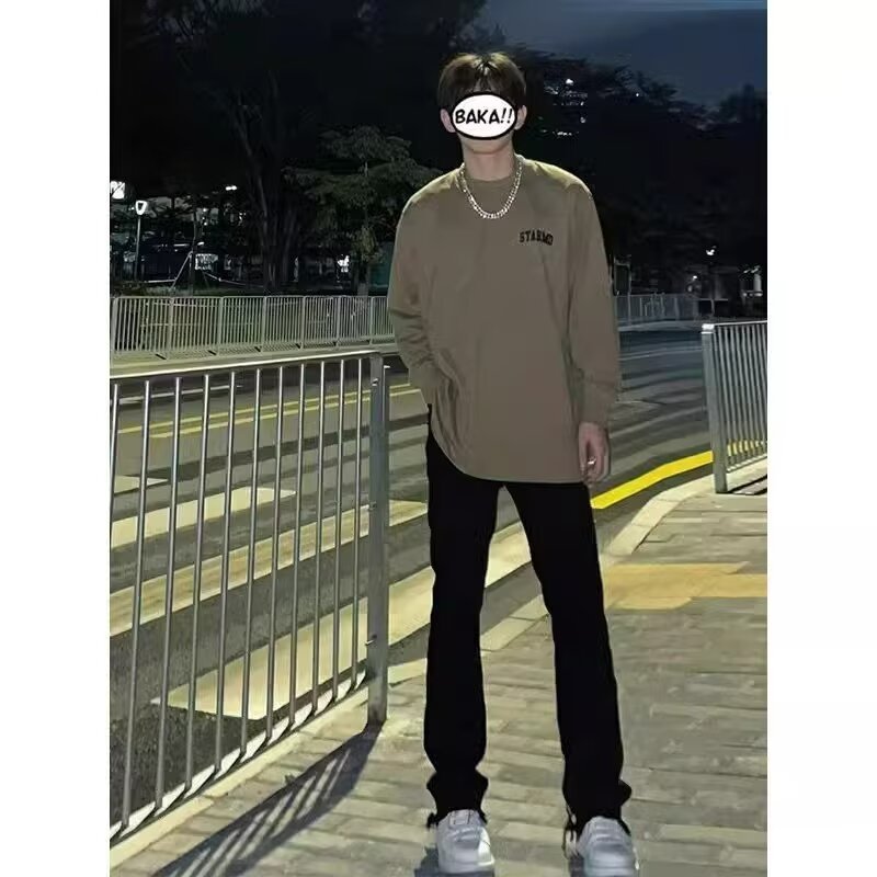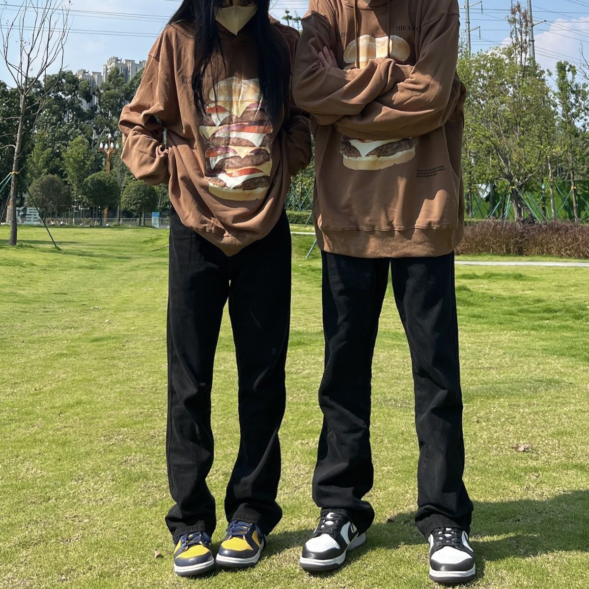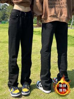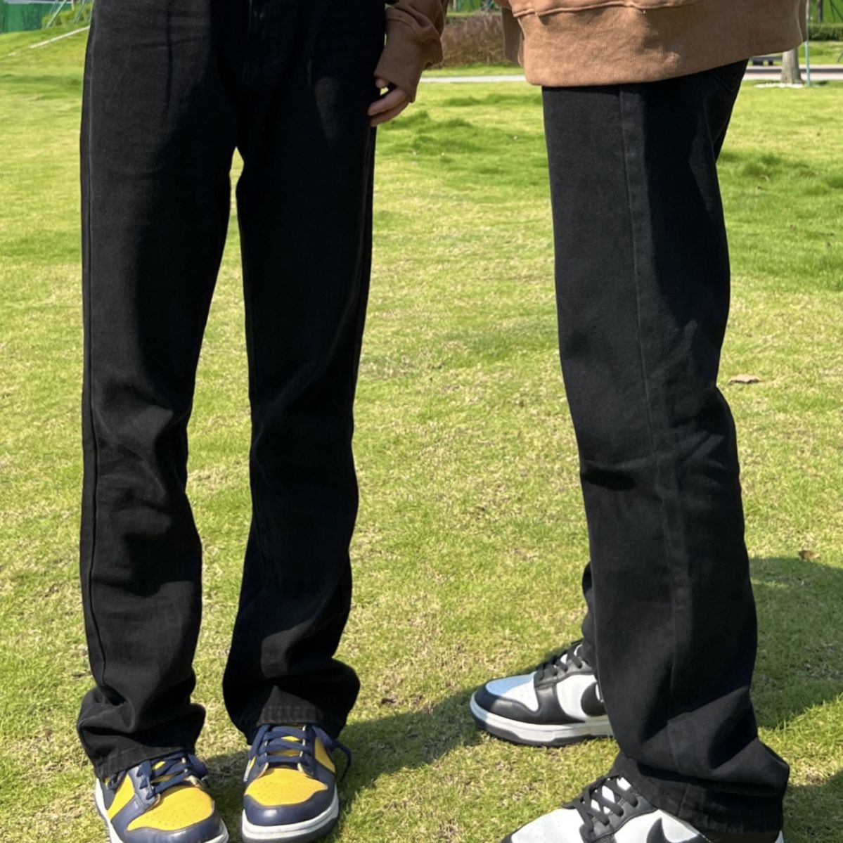 美式复古破洞微喇叭黑色牛仔裤男潮牌高街百搭直筒显瘦宽松裤子
