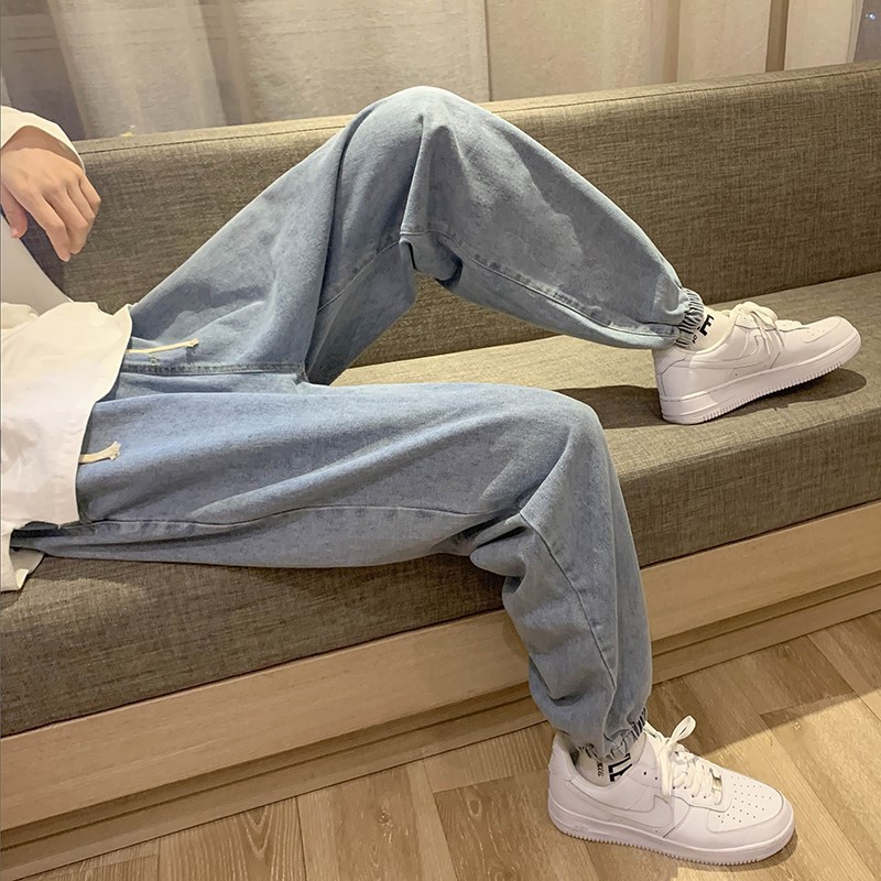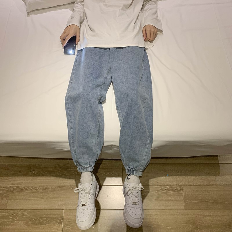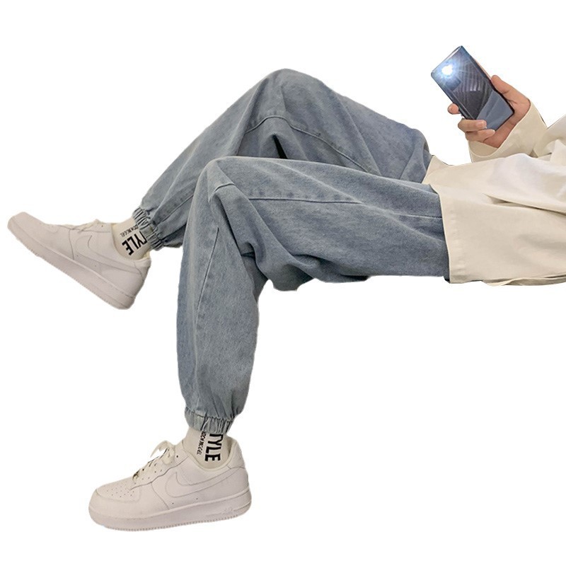 牛仔裤男春夏高街ins潮牌帅气原宿风裤子宽松韩版潮流束脚九分裤