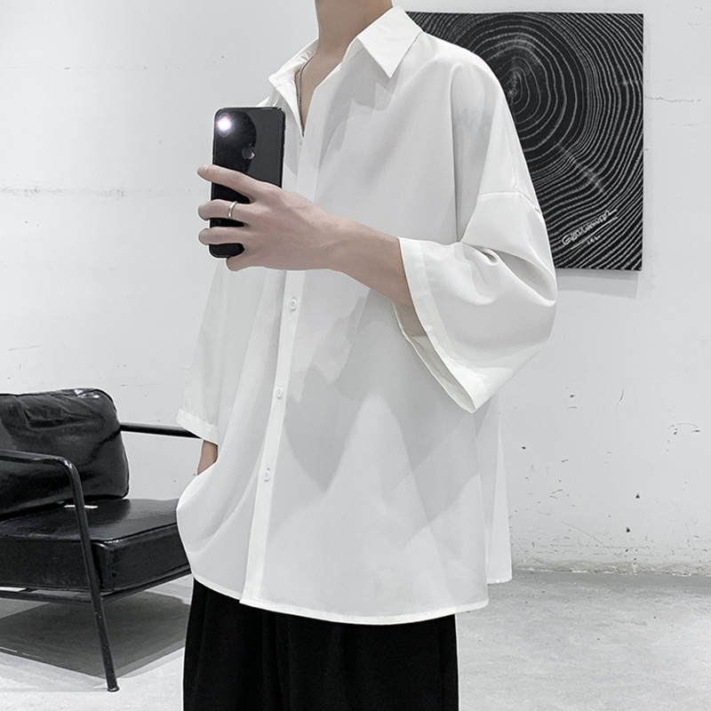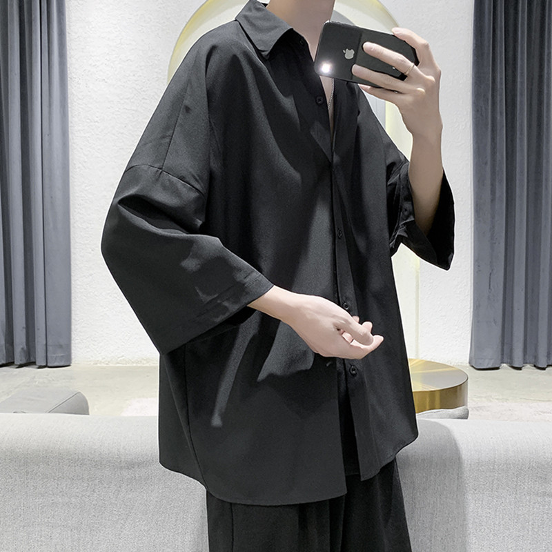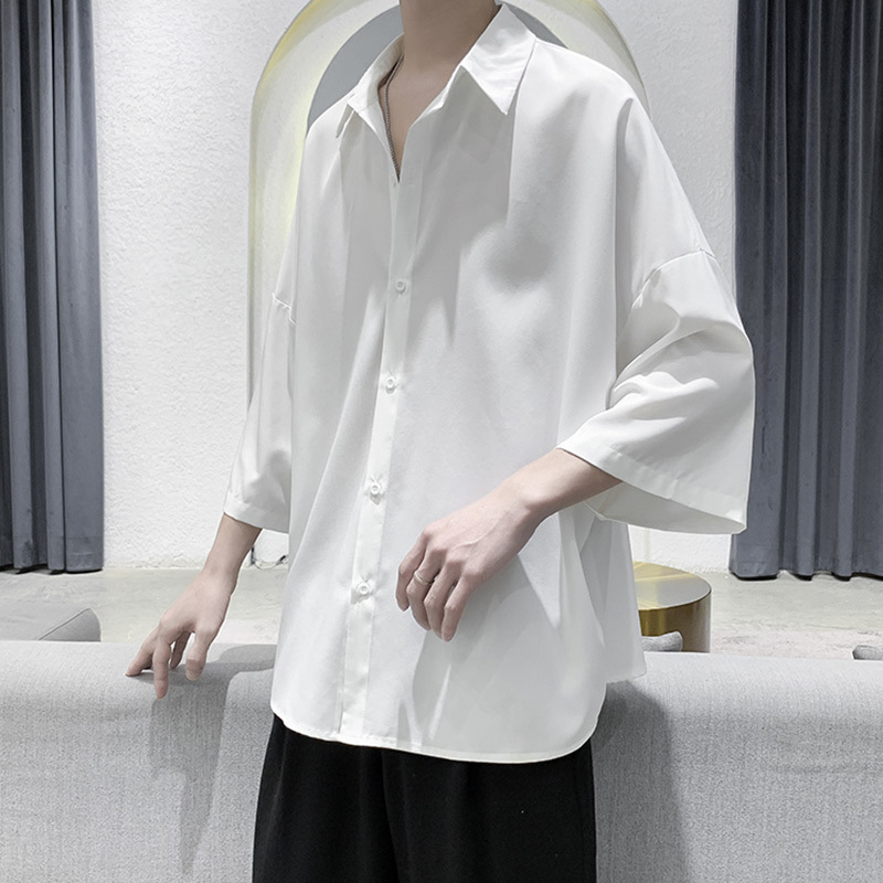年夏季薄款衬衣冰丝衬衫男短袖设计感小众痞帅ins潮日系寸衫
