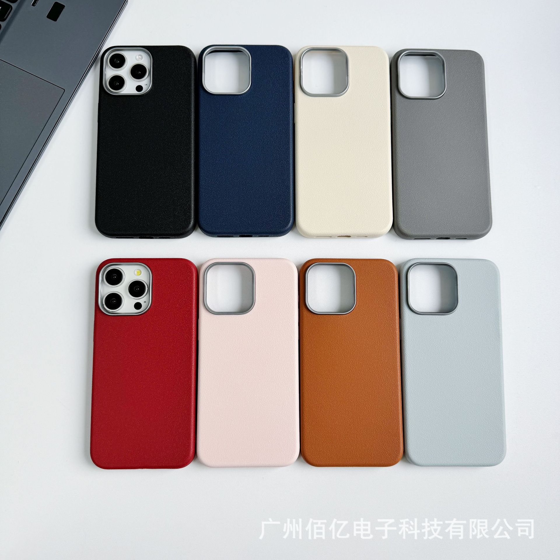 适用iPhone15promax素皮手机壳大孔TPU苹果软壳秋冬仿皮纹壳纯色