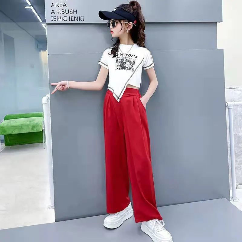 女童夏季运动套装时髦韩版中大童炸街上衣阔腿裤短袖两件套儿童装
