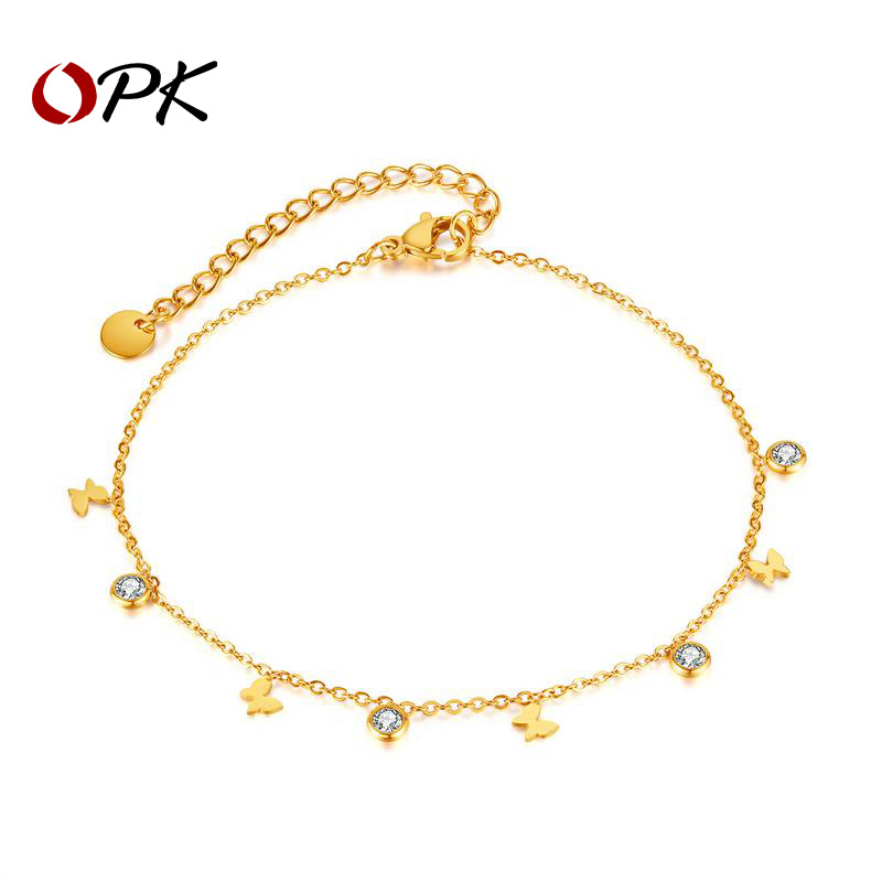 OPK饰品抖音直播货源小众设计感简约个性不锈钢小蝴蝶锆石脚链女