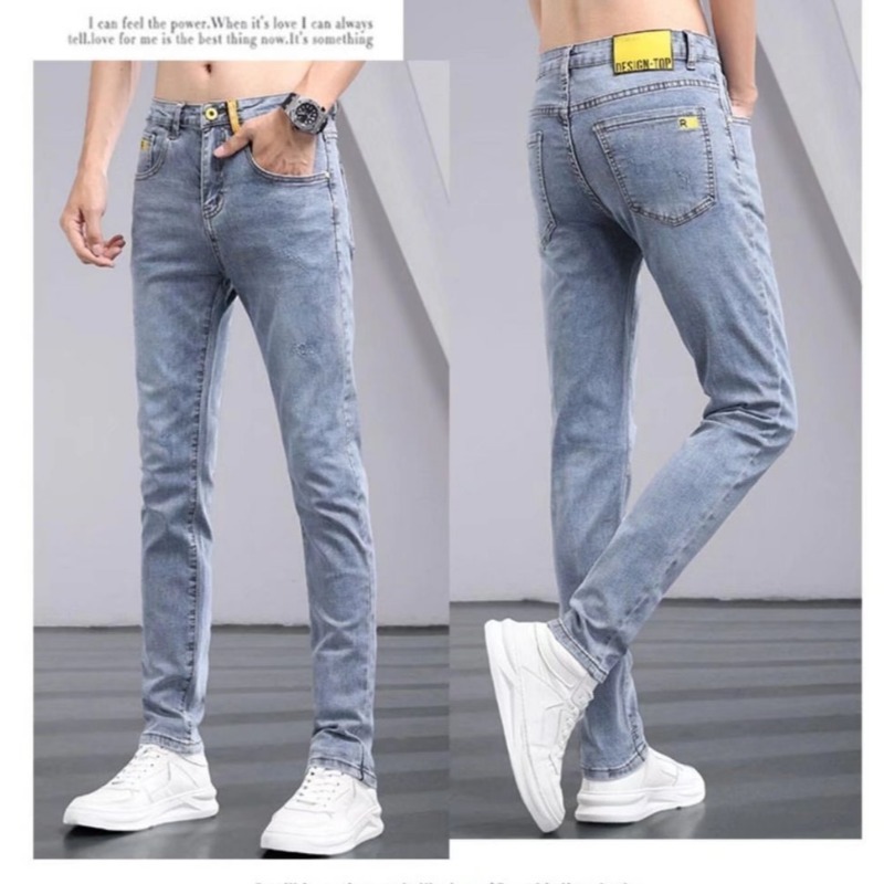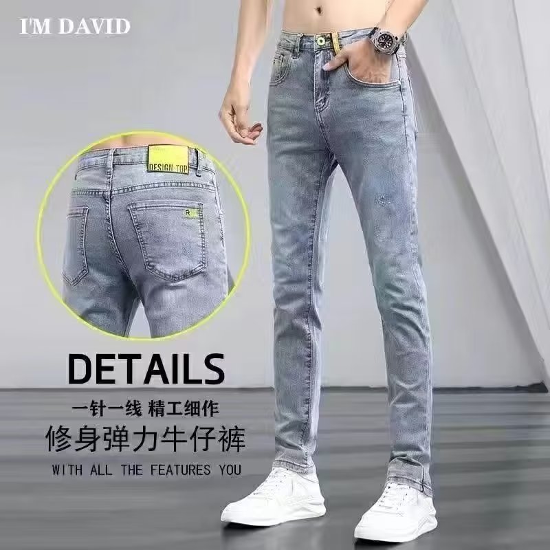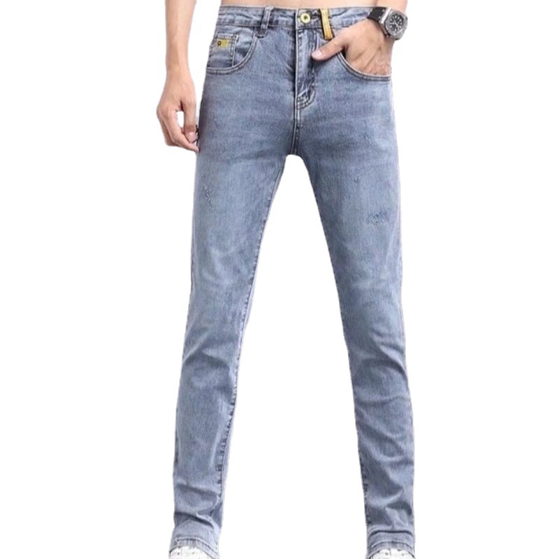 夏季薄款破洞牛仔裤男潮牌修身弹力小脚百搭长裤韩版潮流浅色裤子