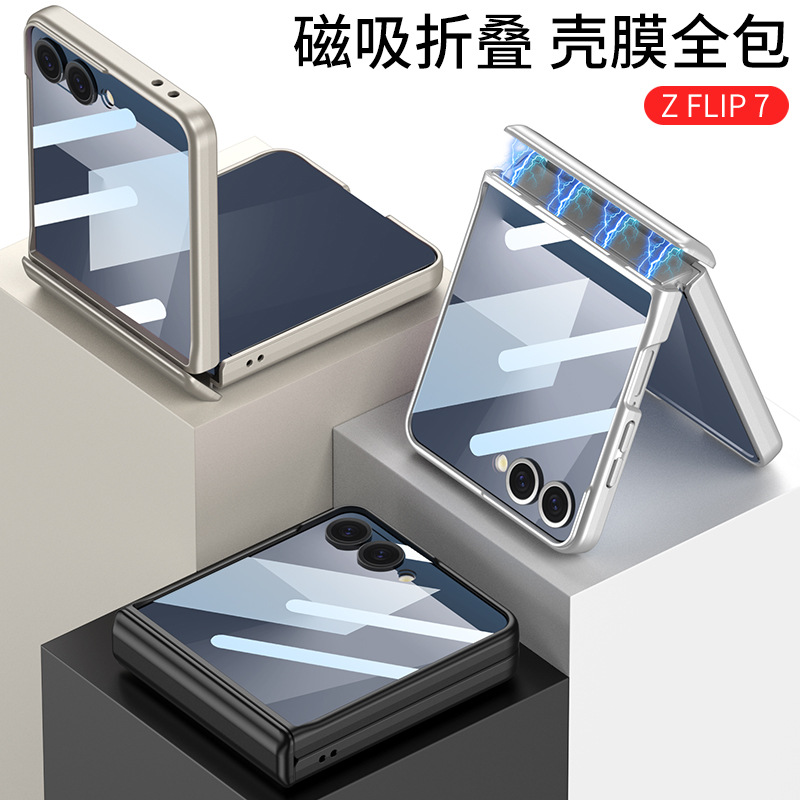 适用三星zflip7手机壳折叠屏超薄壳膜一体磁吸透明跨境简约硬壳