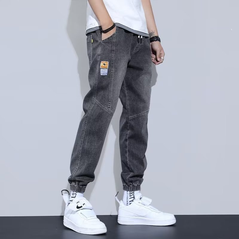 春季牛仔裤男新款春夏季潮牌工装宽松束脚哈伦九分休闲长裤子