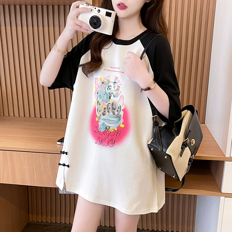 设计感小众新中式国风撞色插肩短袖T恤女夏季洋气时髦慵懒风上衣
