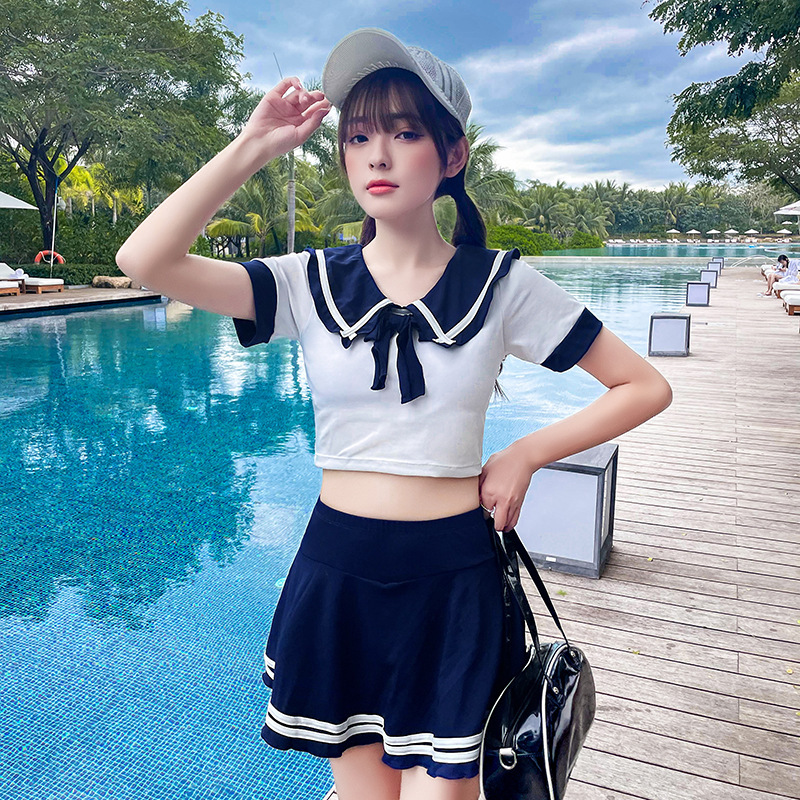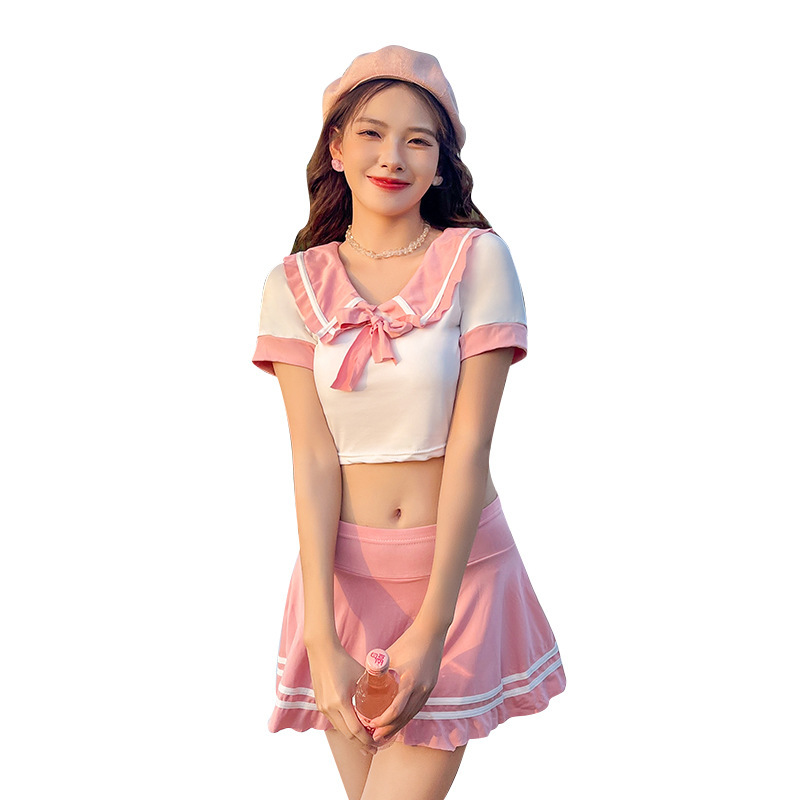 游泳衣女夏分体两件套保守显瘦遮肚少女学生韩国温泉裙式游泳装女