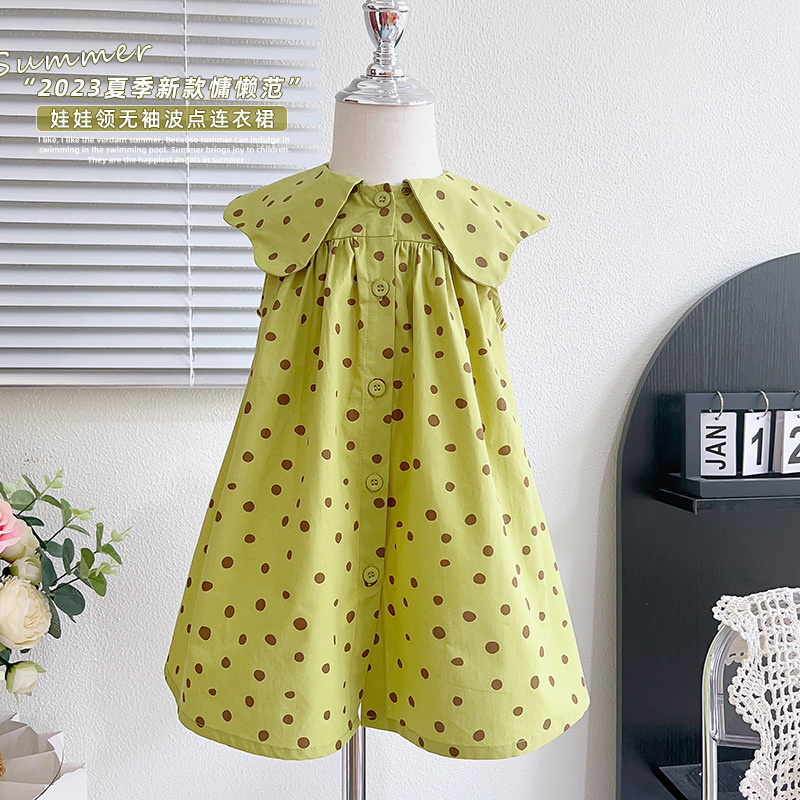 女童中小童2025夏季新款儿童休闲娃娃领无袖波点连衣裙