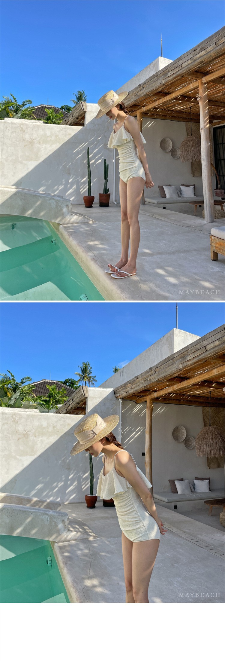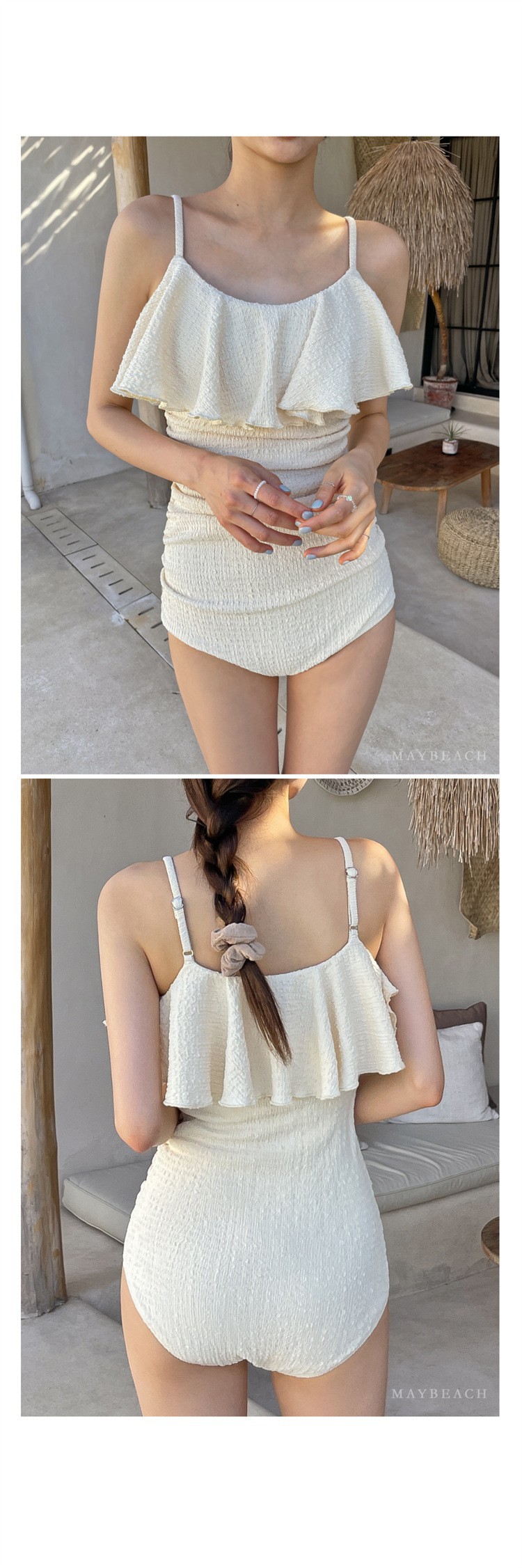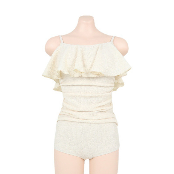 日韩新款仙女范荷叶边女士连体泳衣性感吊带露背修身辣妹度假泳装
