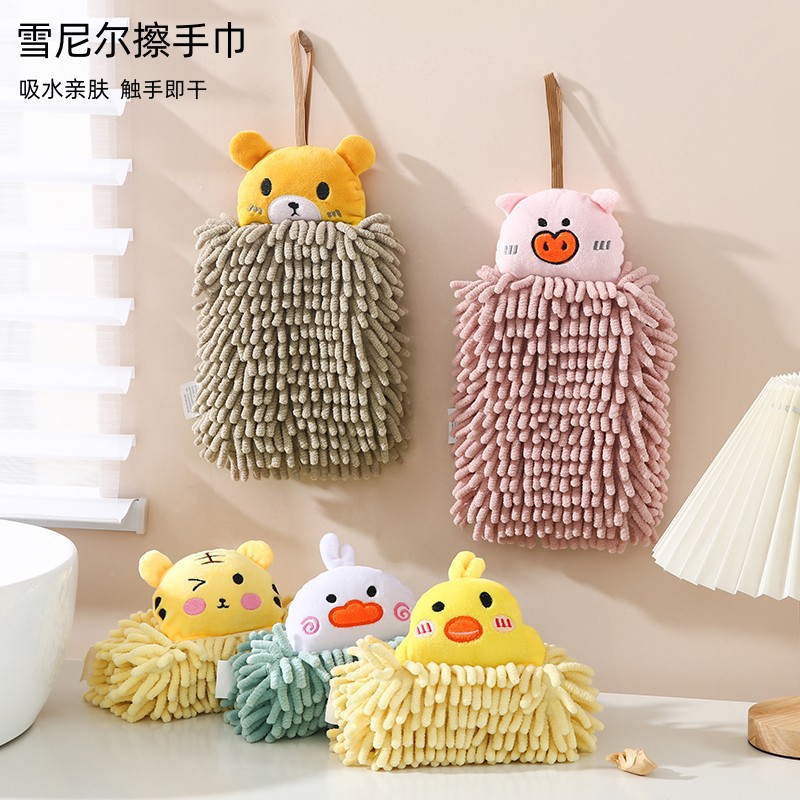 卡通可爱雪尼尔擦手巾家用厨房可挂式吸水毛巾加厚速干擦手巾抹布