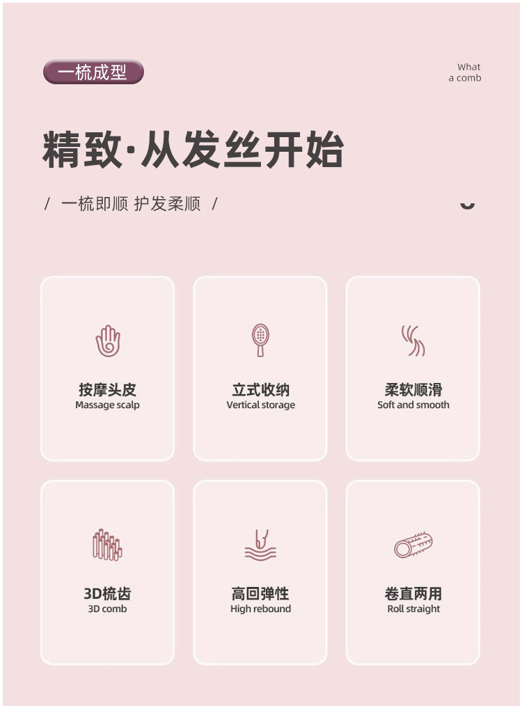 【镂空排骨梳】蓬松定型/干湿两用-山茶粉