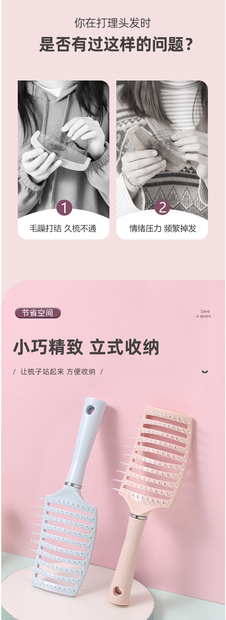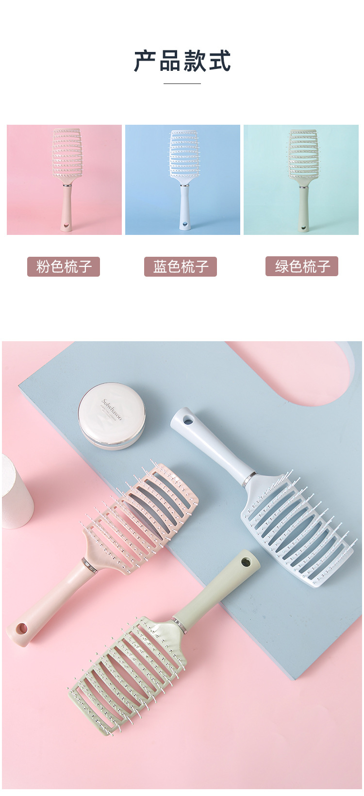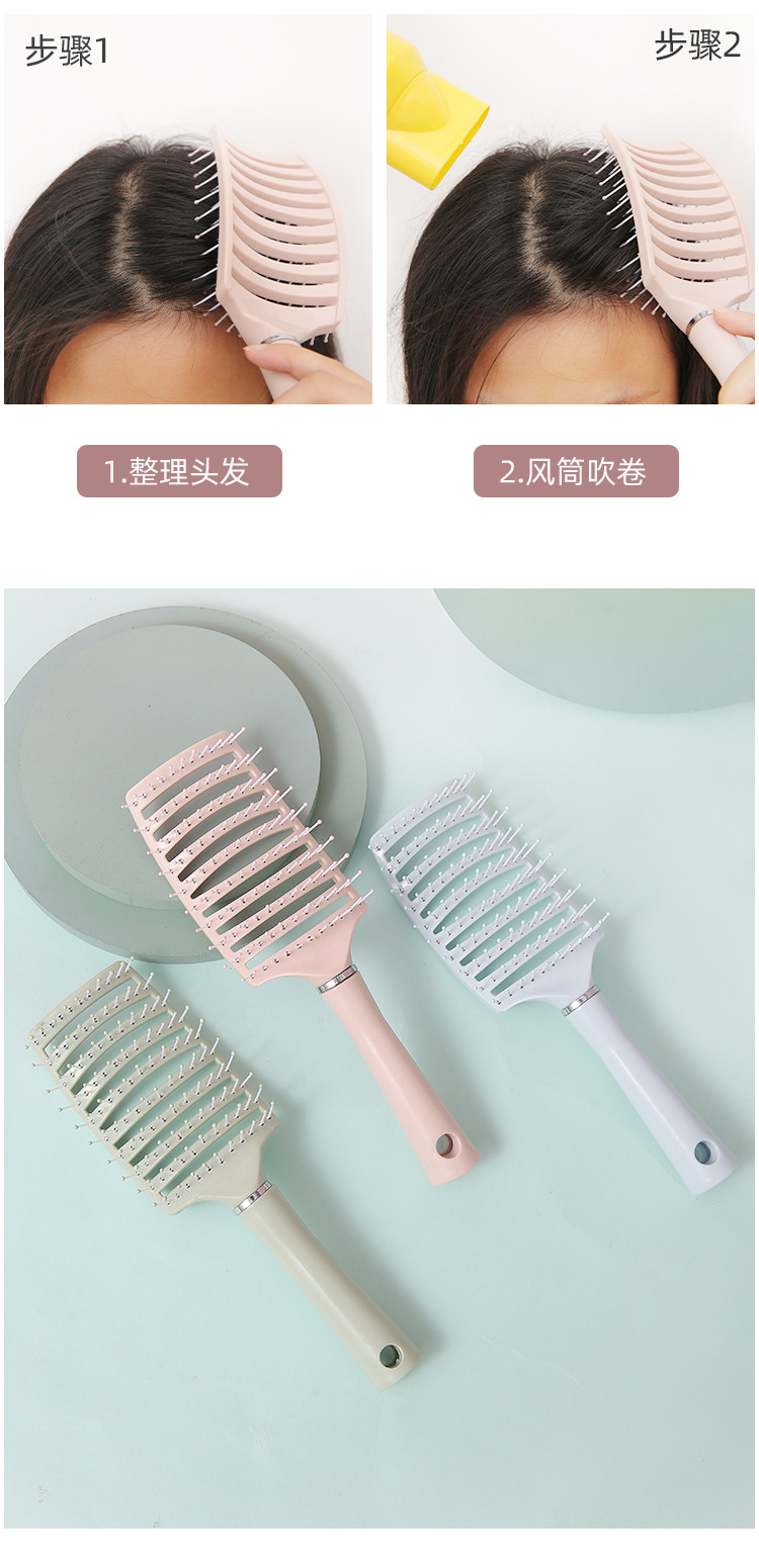 大排骨梳子卷发梳背头蓬松造型神器气囊梳子长发卷发按摩大弯梳子