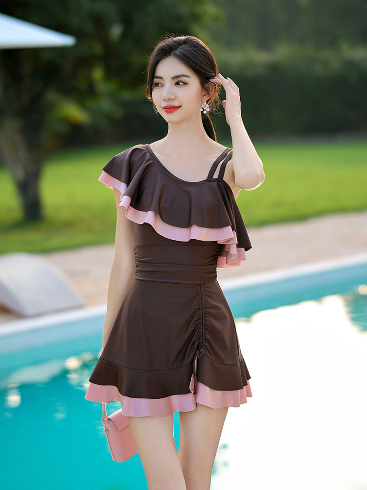 新款连体泳衣女夏法式设计感连体裙式游泳衣女显瘦温泉泳装女