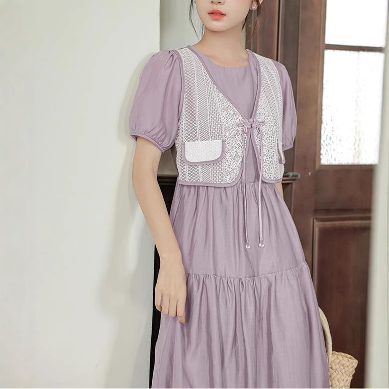 新中国风盘扣假两件连衣裙女设计感高定长裙收腰显瘦气质A字裙子