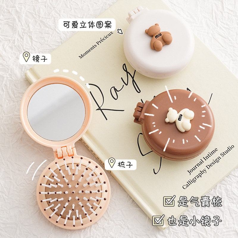 可爱小梳子随身便携迷你气垫梳儿童女孩折叠气囊梳按摩梳镜子一体