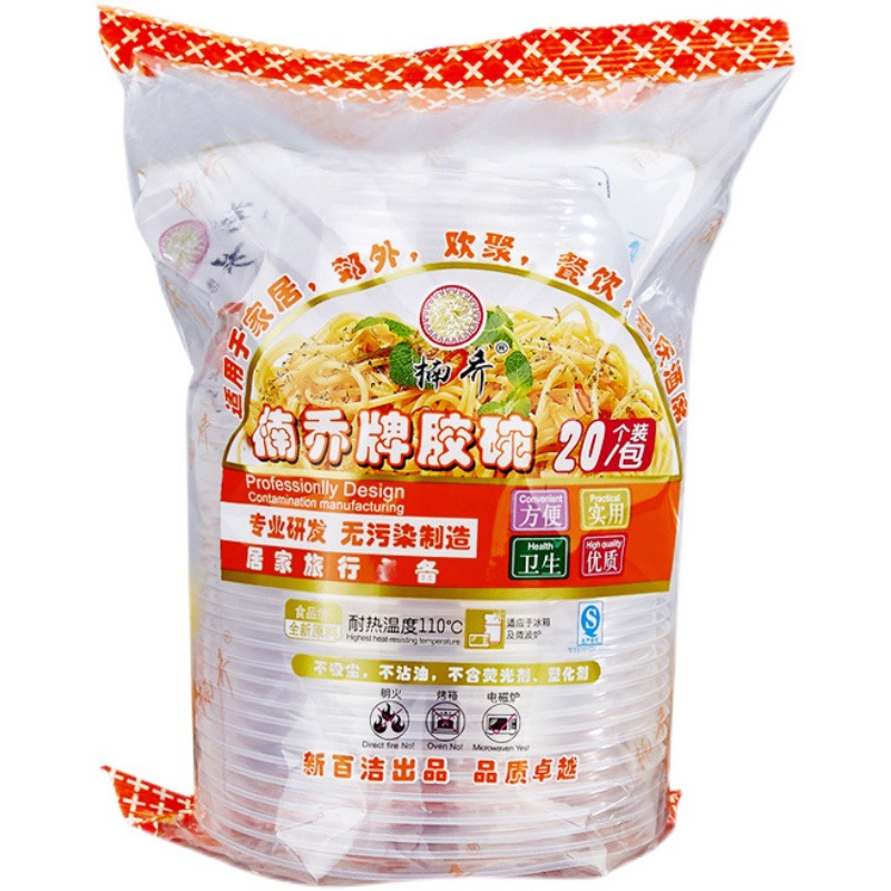 一次性碗塑料碗快餐汤碗超市家用外卖打包盒环保圆形透明饭盒