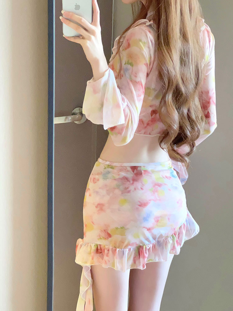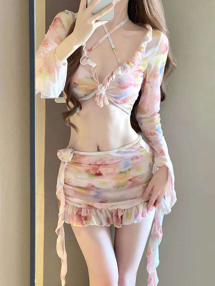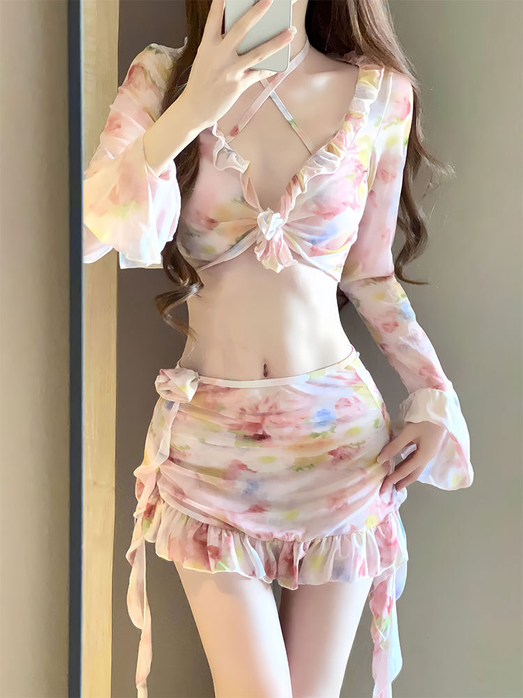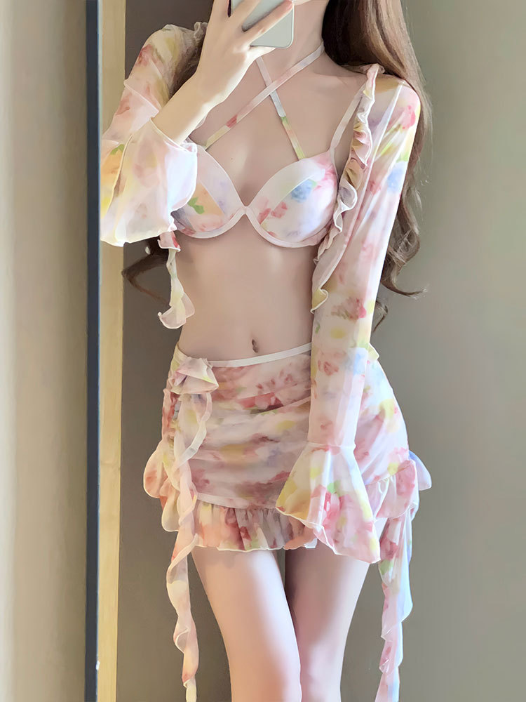 比基尼泳衣女涤纶新款性感四件套分体钢托聚拢显瘦温泉游泳衣