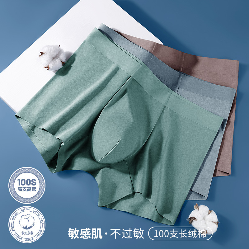 新款100支长绒棉内裤男士无痕商务平角裤高端内裤男棉 四角裤