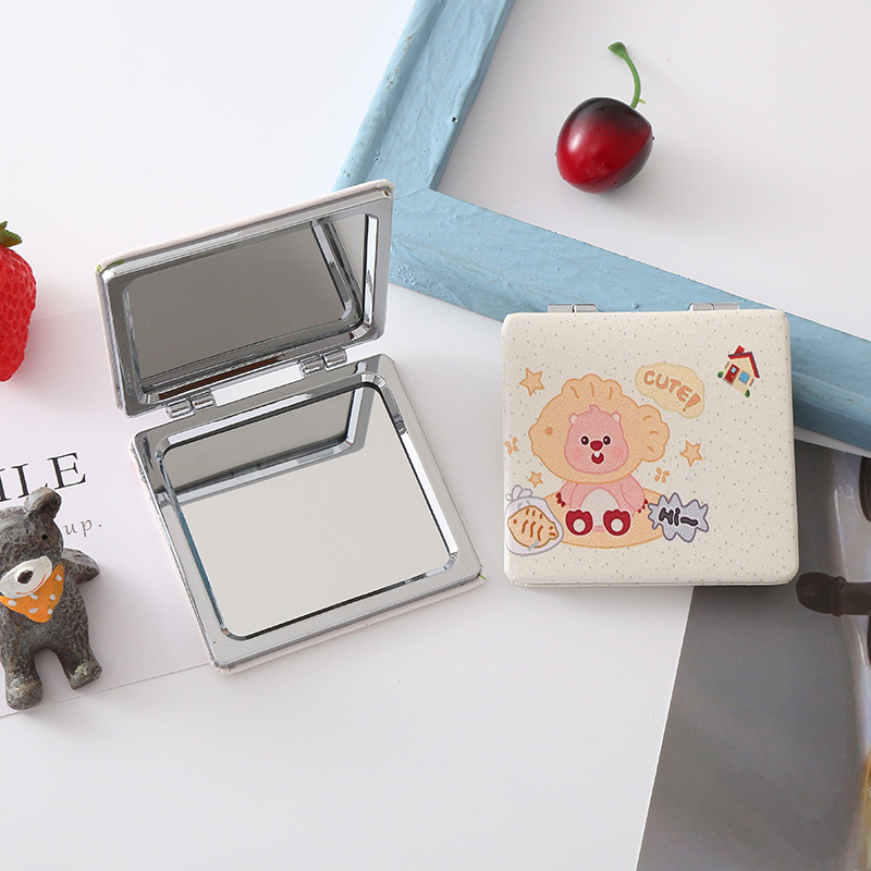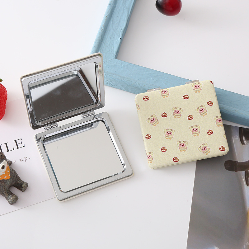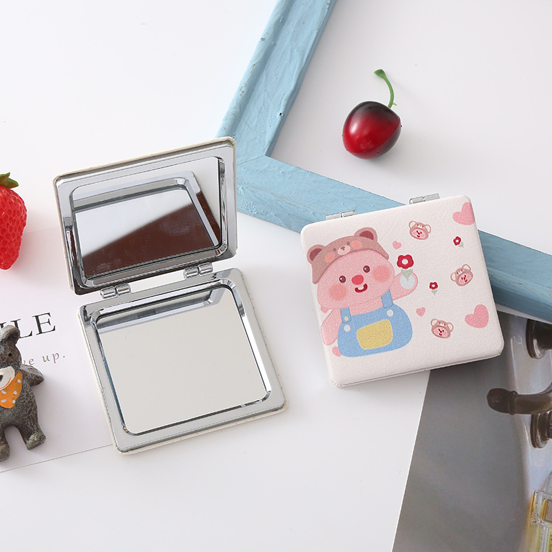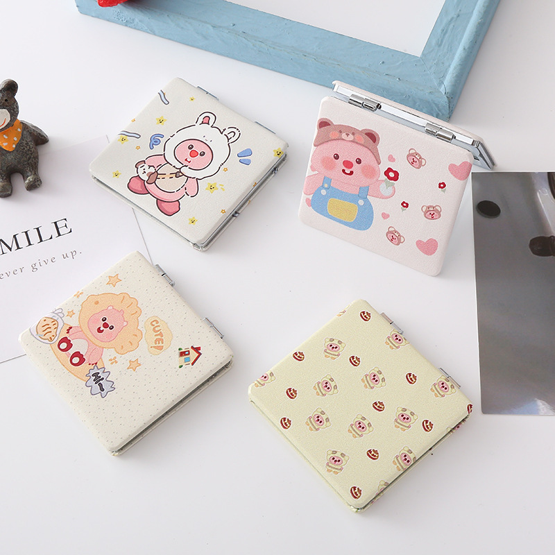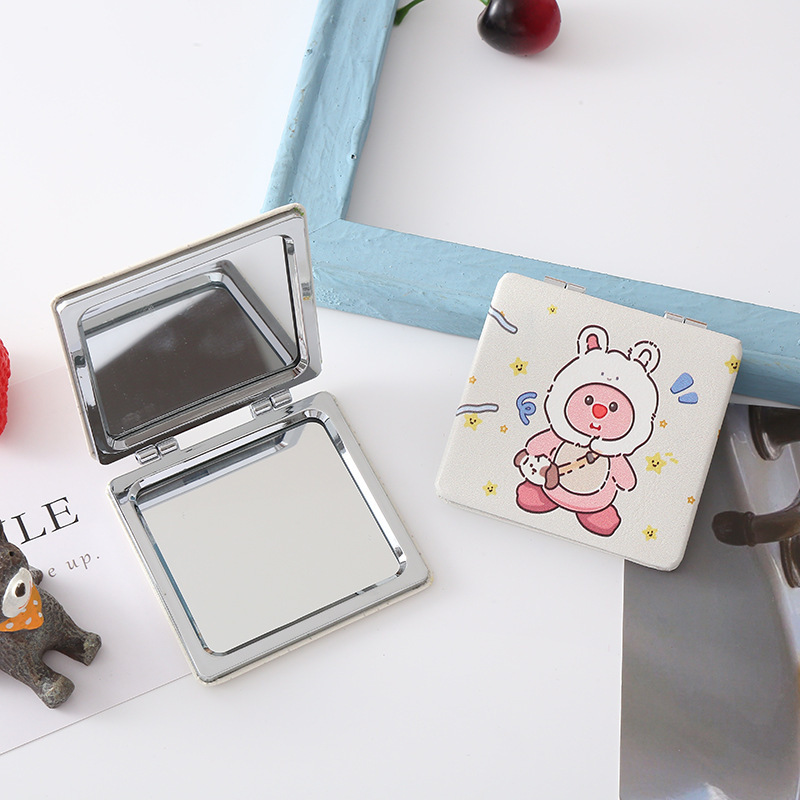 可爱小海狸LOOPY周边手持化妆镜随身便携折叠镜双面迷你补妆镜