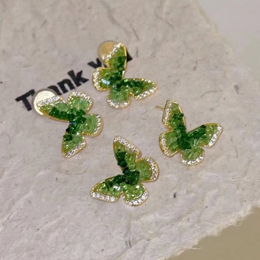 精致独特紫色水晶蝴蝶耳夹无耳洞耳骨夹女甜酷风气质小众设计耳饰