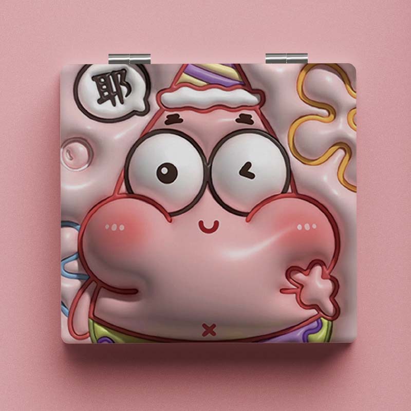 可爱海绵宝宝派大星卡通化妆折叠镜手持镜小镜子高级感便携高颜值