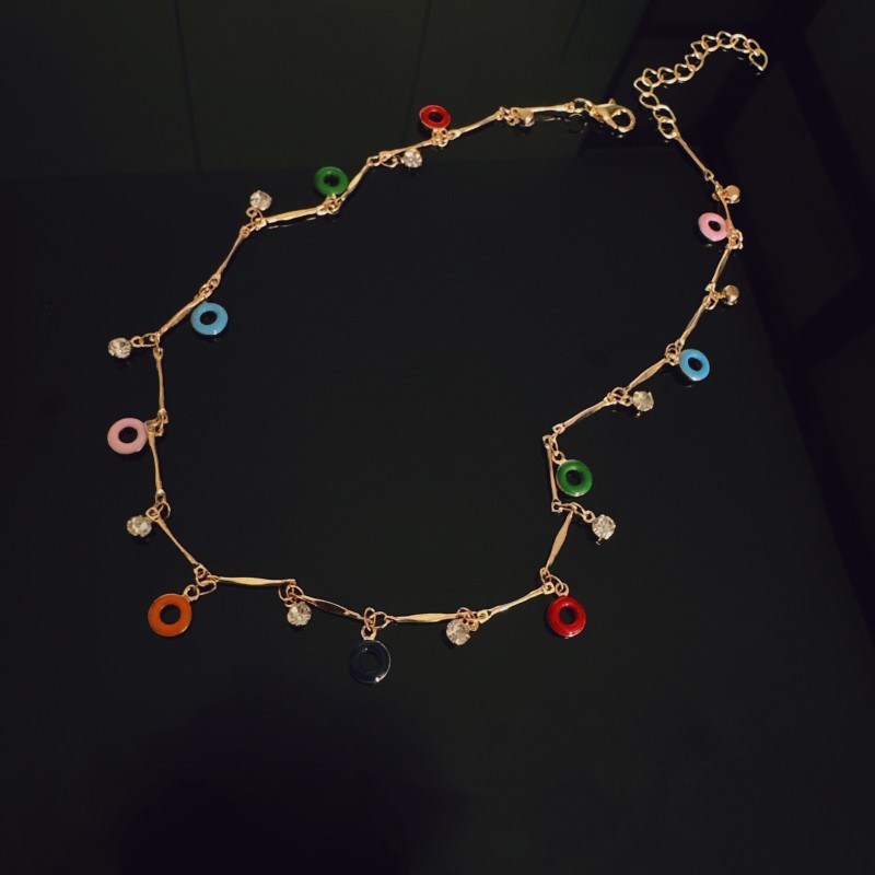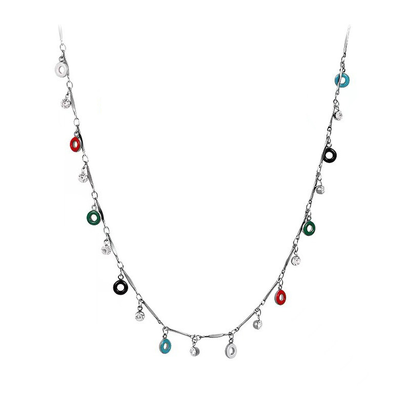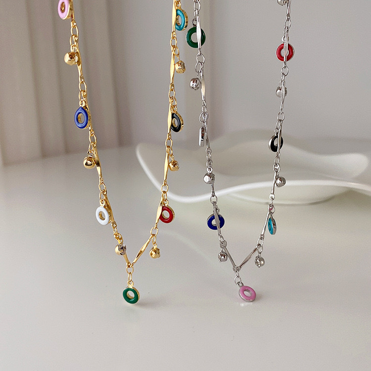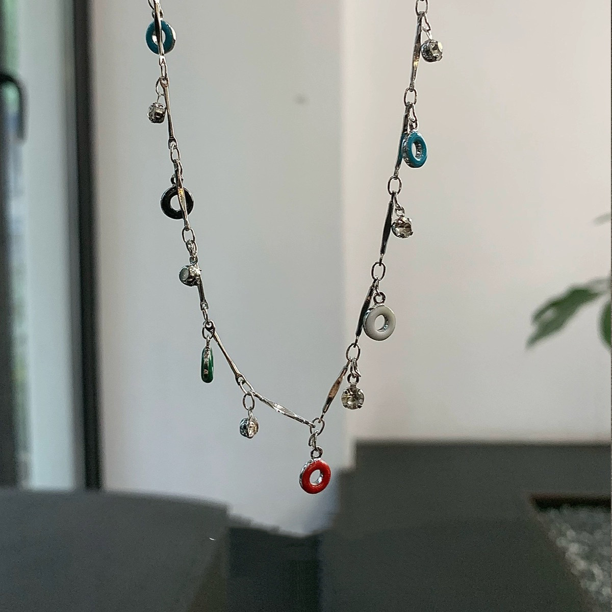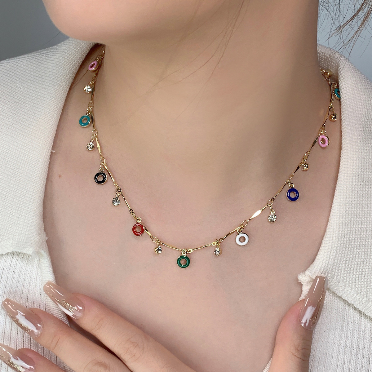 百搭气质泫雅风七彩滴釉圆圈锁骨链辣妹个性小众甜酷风流苏项链女