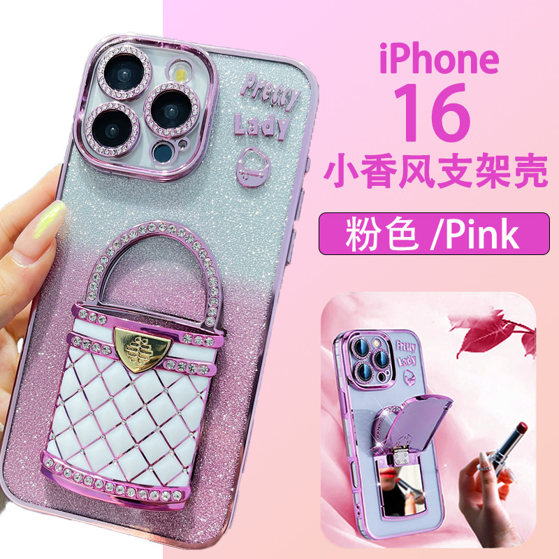 适用iphone16pro手机壳高级感15pro保护套华为P70Pro带支架镜闪粉